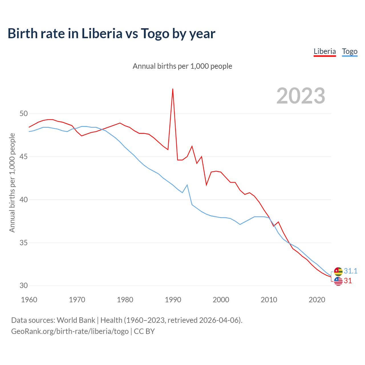 GeoRank.org/birth-rate/liberia/togo | CC BY