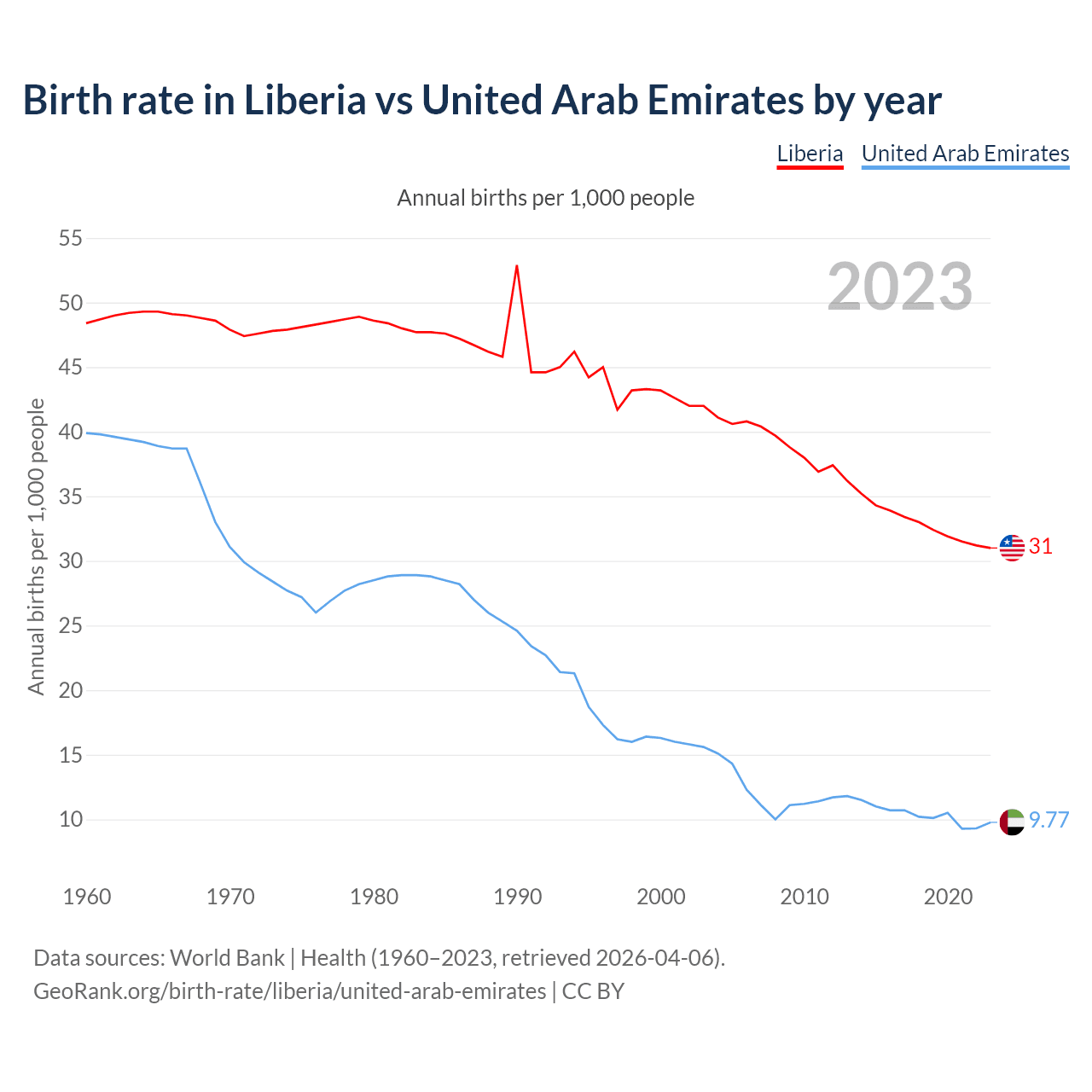 GeoRank.org/birth-rate/liberia/united-arab-emirates | CC BY