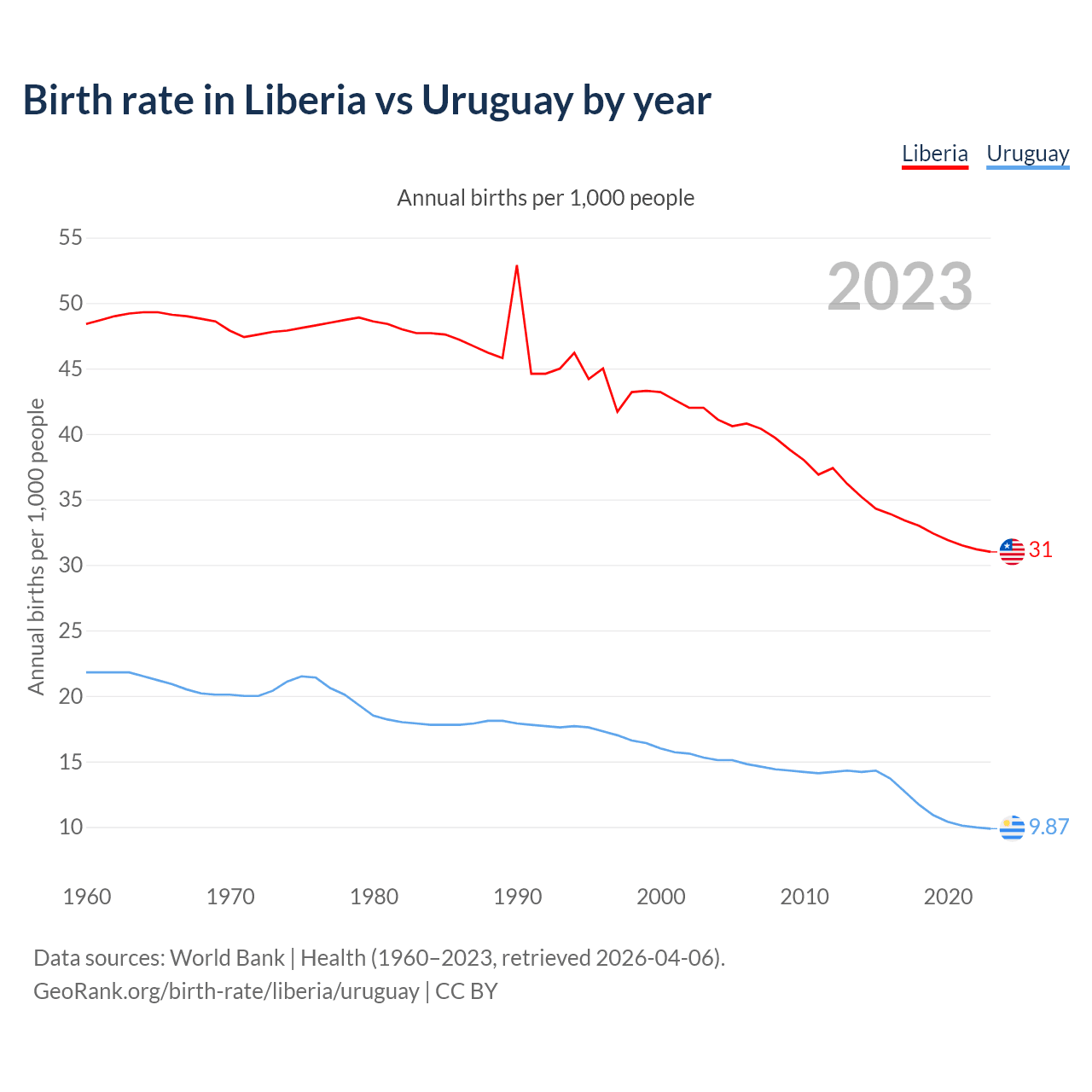 GeoRank.org/birth-rate/liberia/uruguay | CC BY