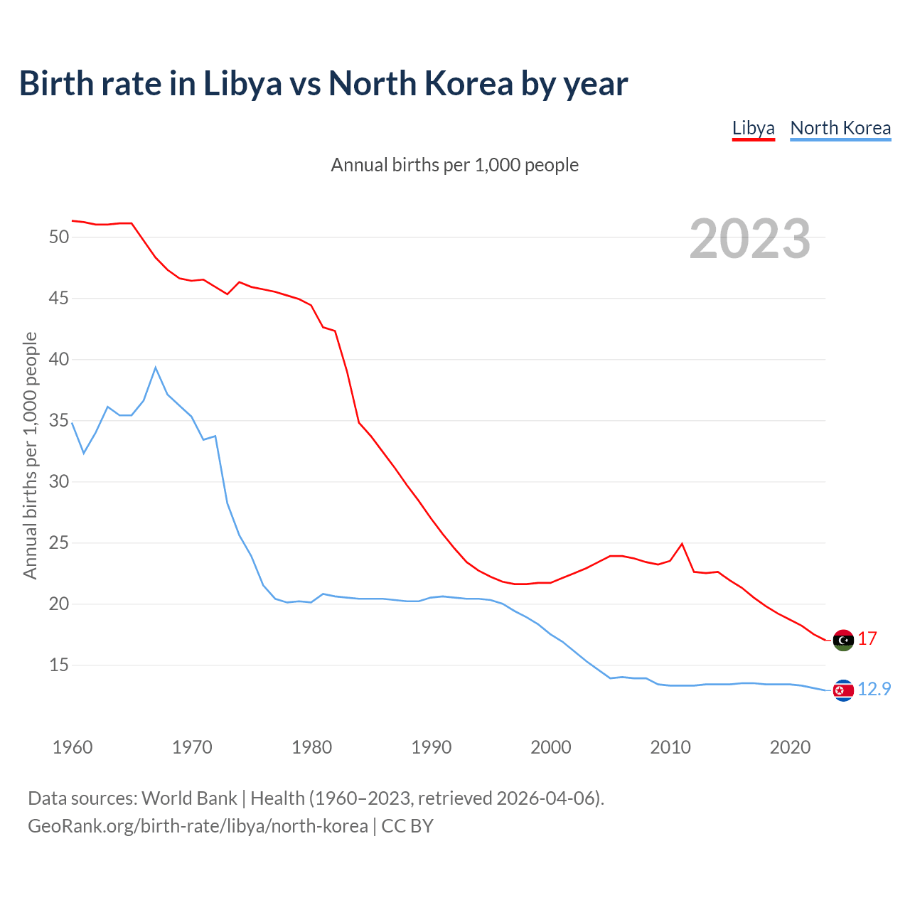 GeoRank.org/birth-rate/libya/north-korea | CC BY