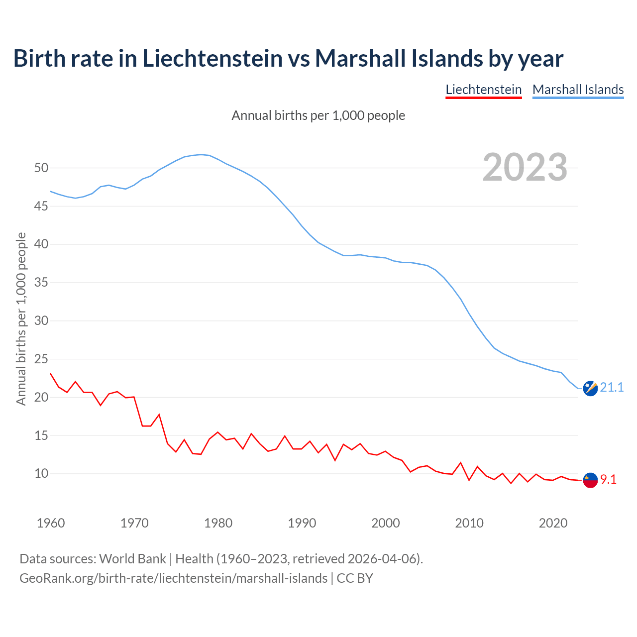 GeoRank.org/birth-rate/liechtenstein/marshall-islands | CC BY