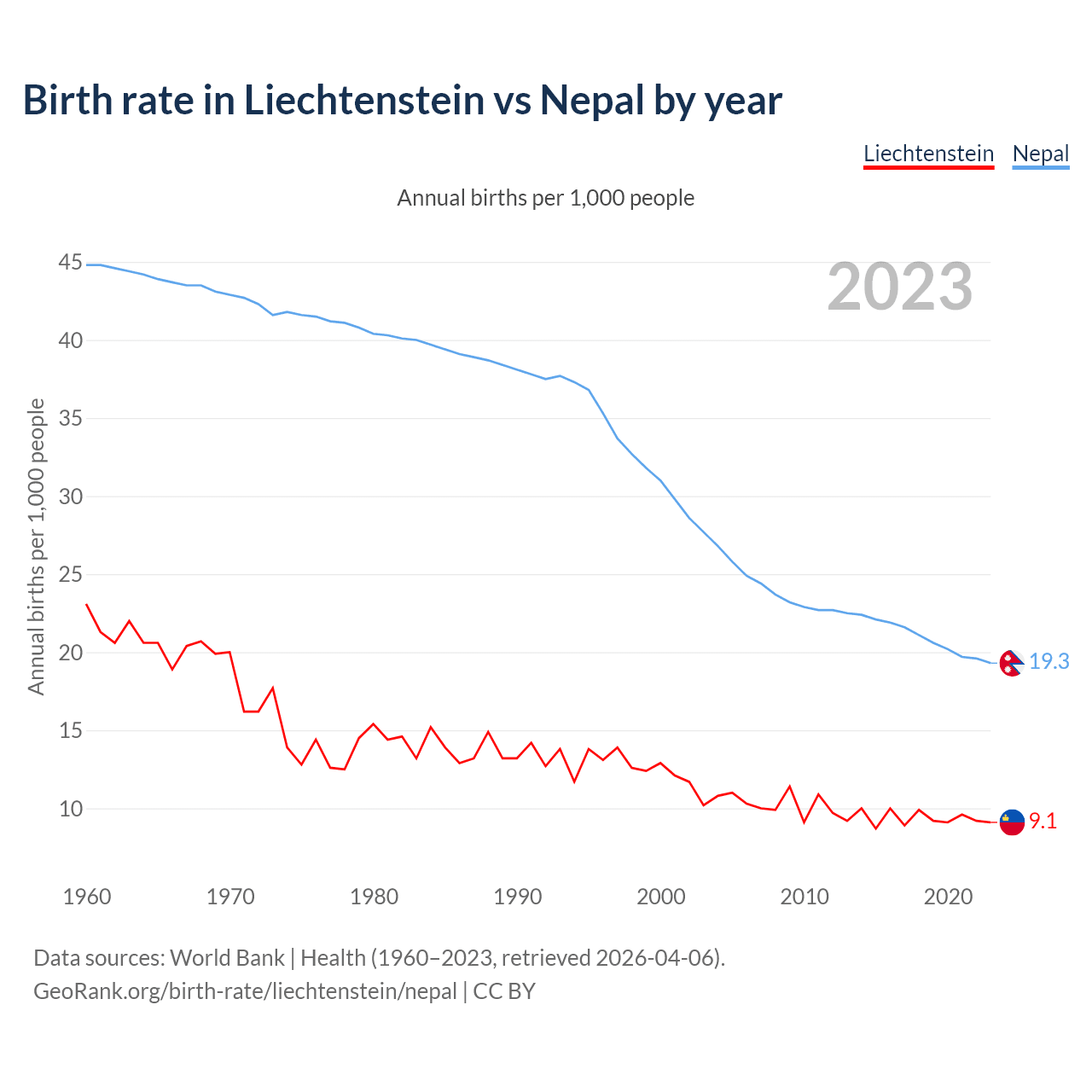 GeoRank.org/birth-rate/liechtenstein/nepal | CC BY