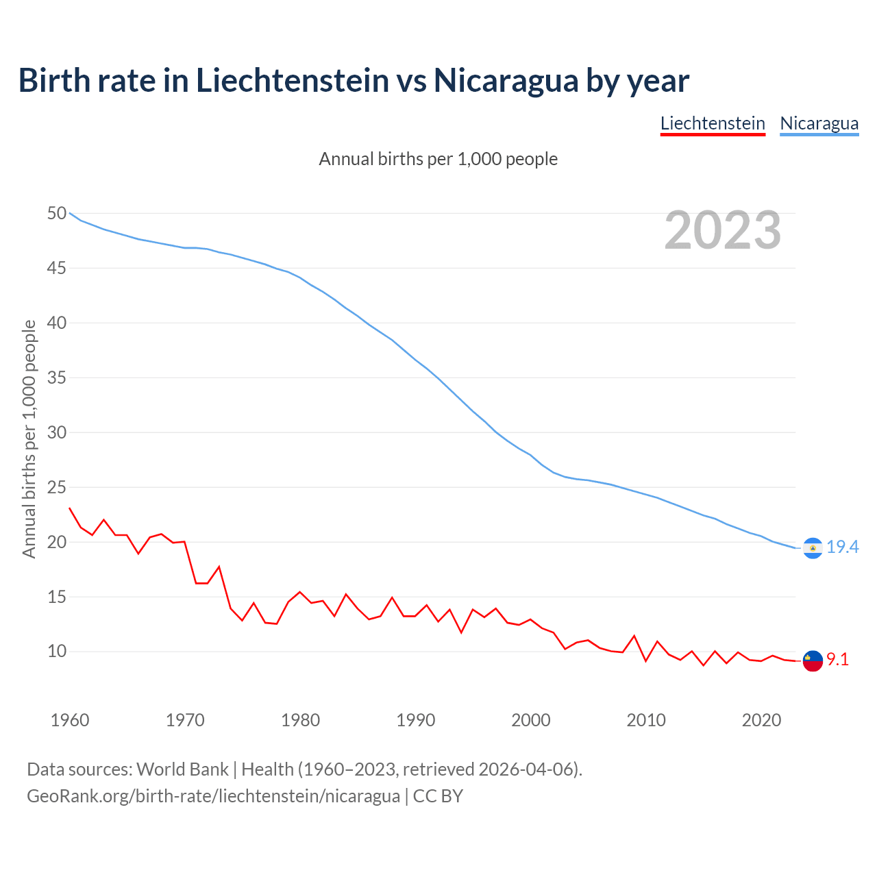 GeoRank.org/birth-rate/liechtenstein/nicaragua | CC BY