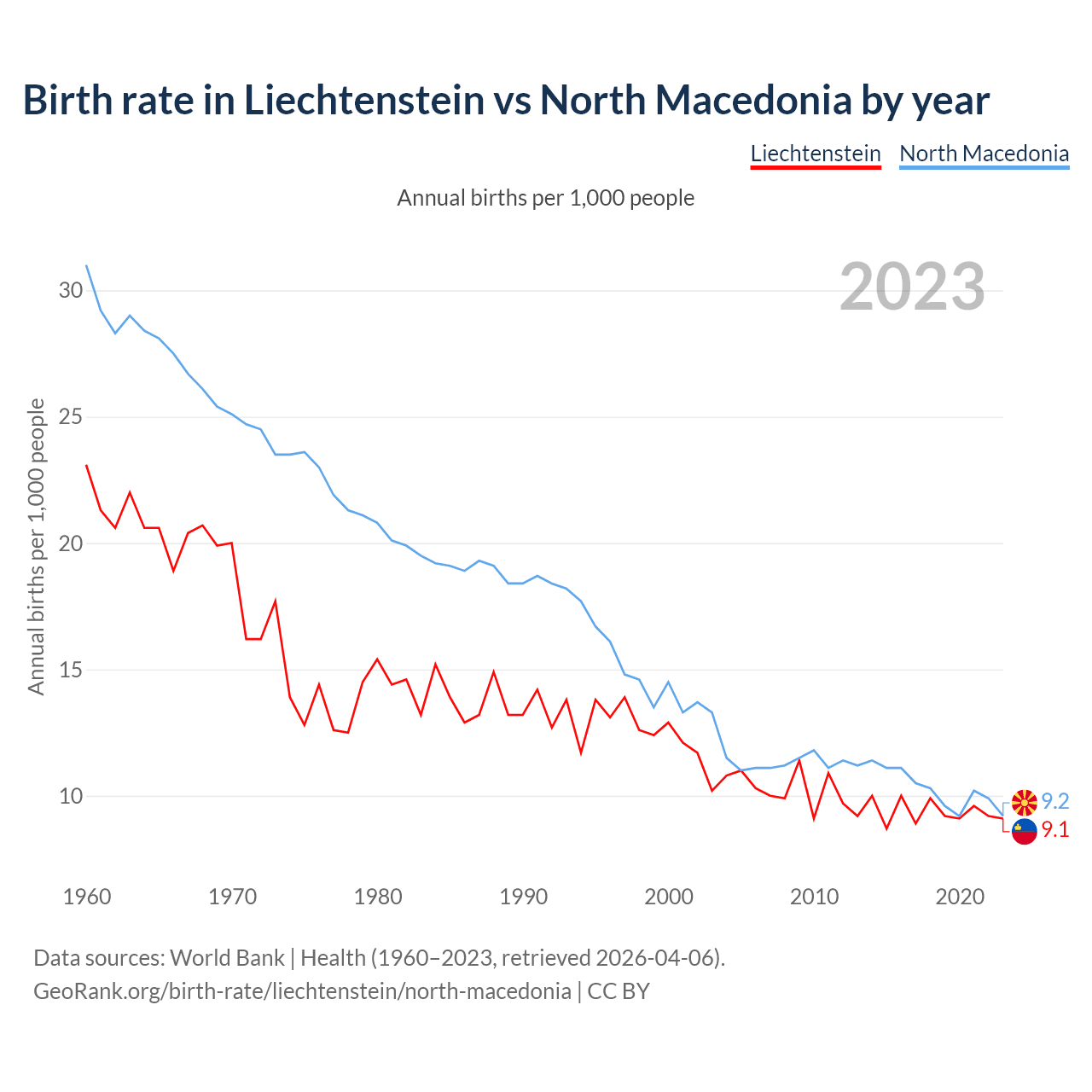 GeoRank.org/birth-rate/liechtenstein/north-macedonia | CC BY