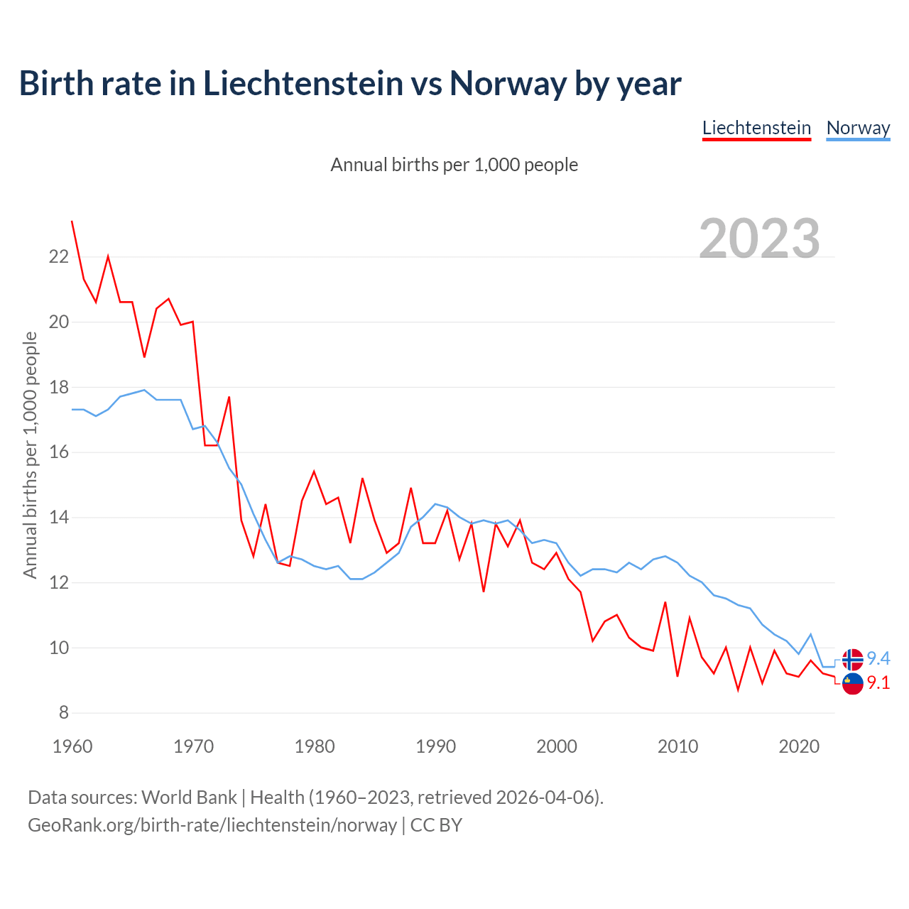GeoRank.org/birth-rate/liechtenstein/norway | CC BY
