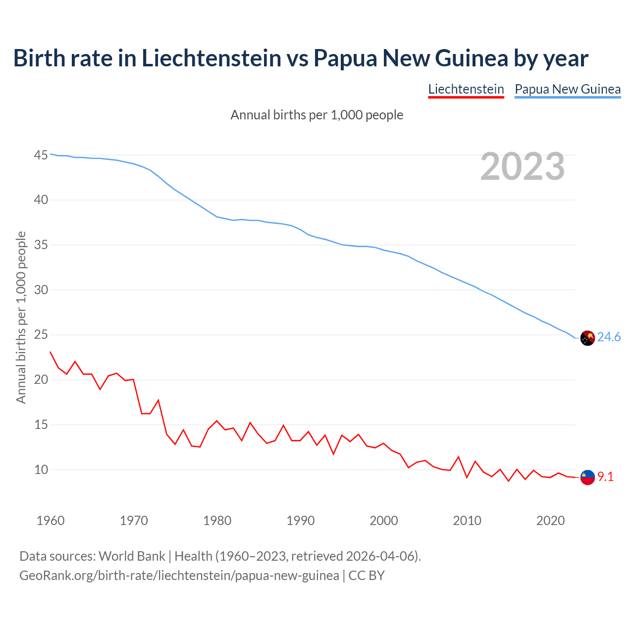 GeoRank.org/birth-rate/liechtenstein/papua-new-guinea | CC BY