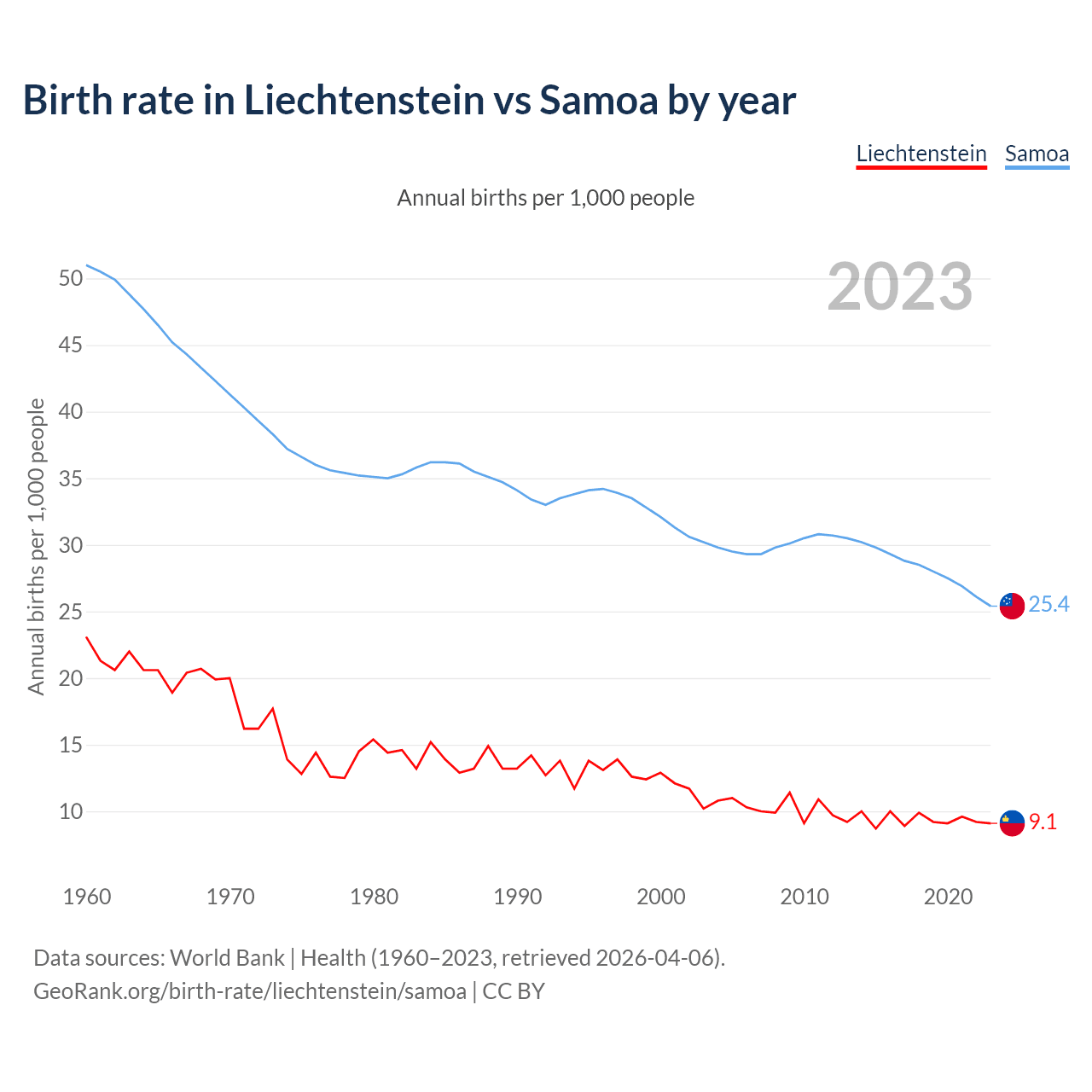 GeoRank.org/birth-rate/liechtenstein/samoa | CC BY