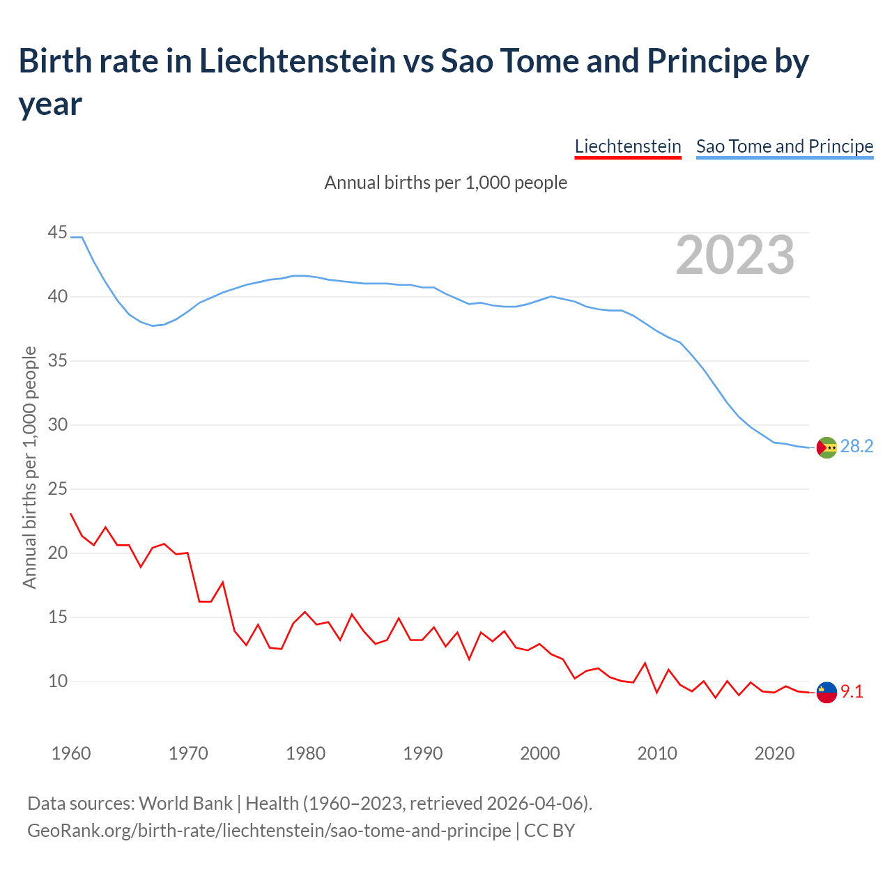 GeoRank.org/birth-rate/liechtenstein/sao-tome-and-principe | CC BY