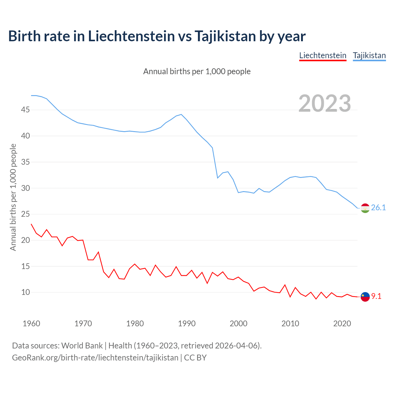 GeoRank.org/birth-rate/liechtenstein/tajikistan | CC BY