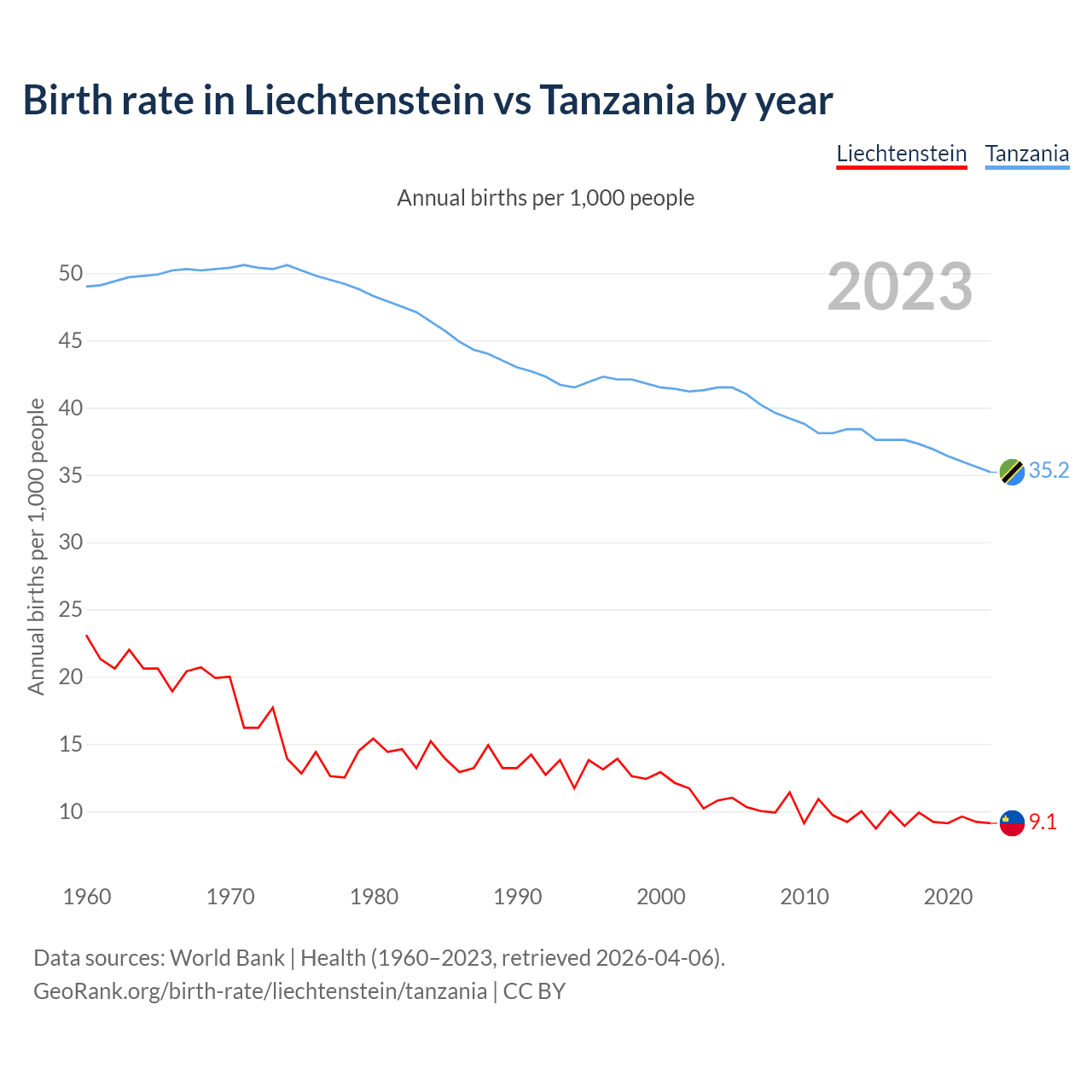 GeoRank.org/birth-rate/liechtenstein/tanzania | CC BY