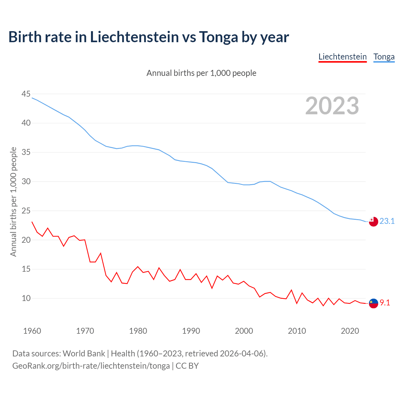GeoRank.org/birth-rate/liechtenstein/tonga | CC BY
