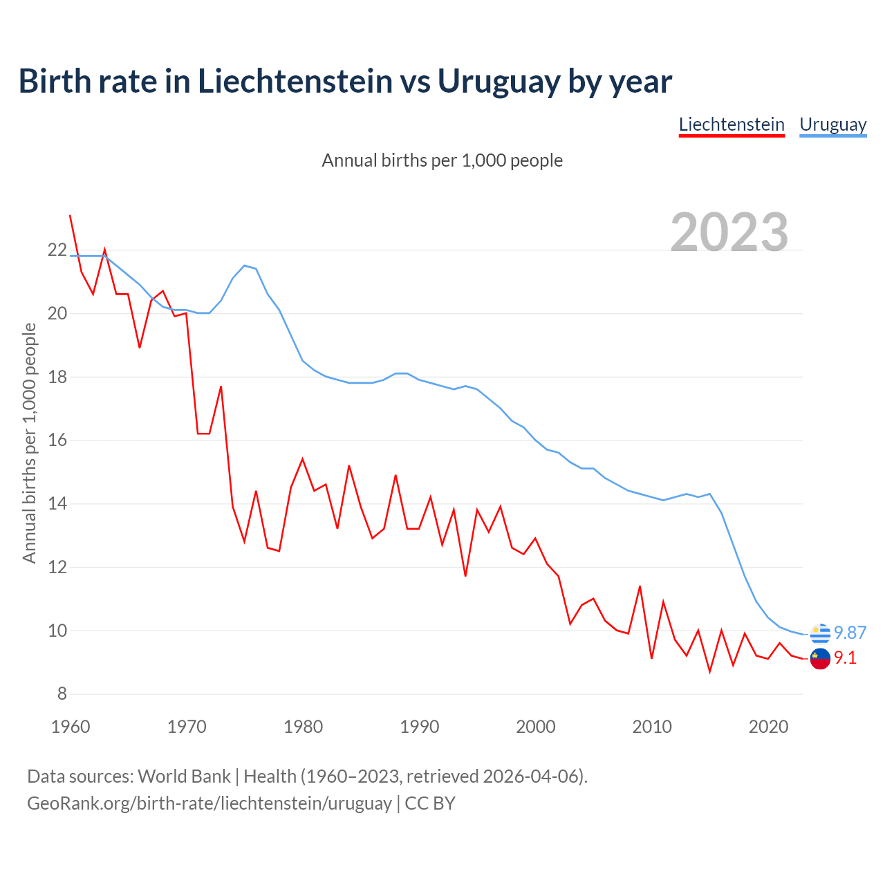 GeoRank.org/birth-rate/liechtenstein/uruguay | CC BY