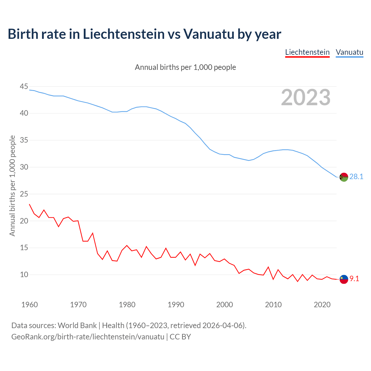 GeoRank.org/birth-rate/liechtenstein/vanuatu | CC BY