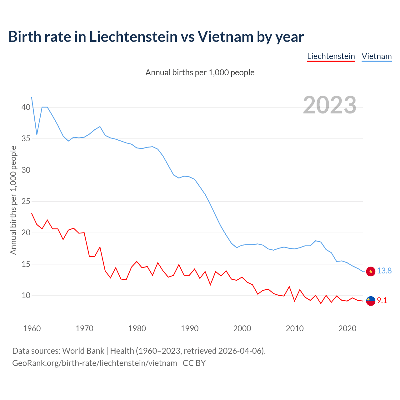 GeoRank.org/birth-rate/liechtenstein/vietnam | CC BY