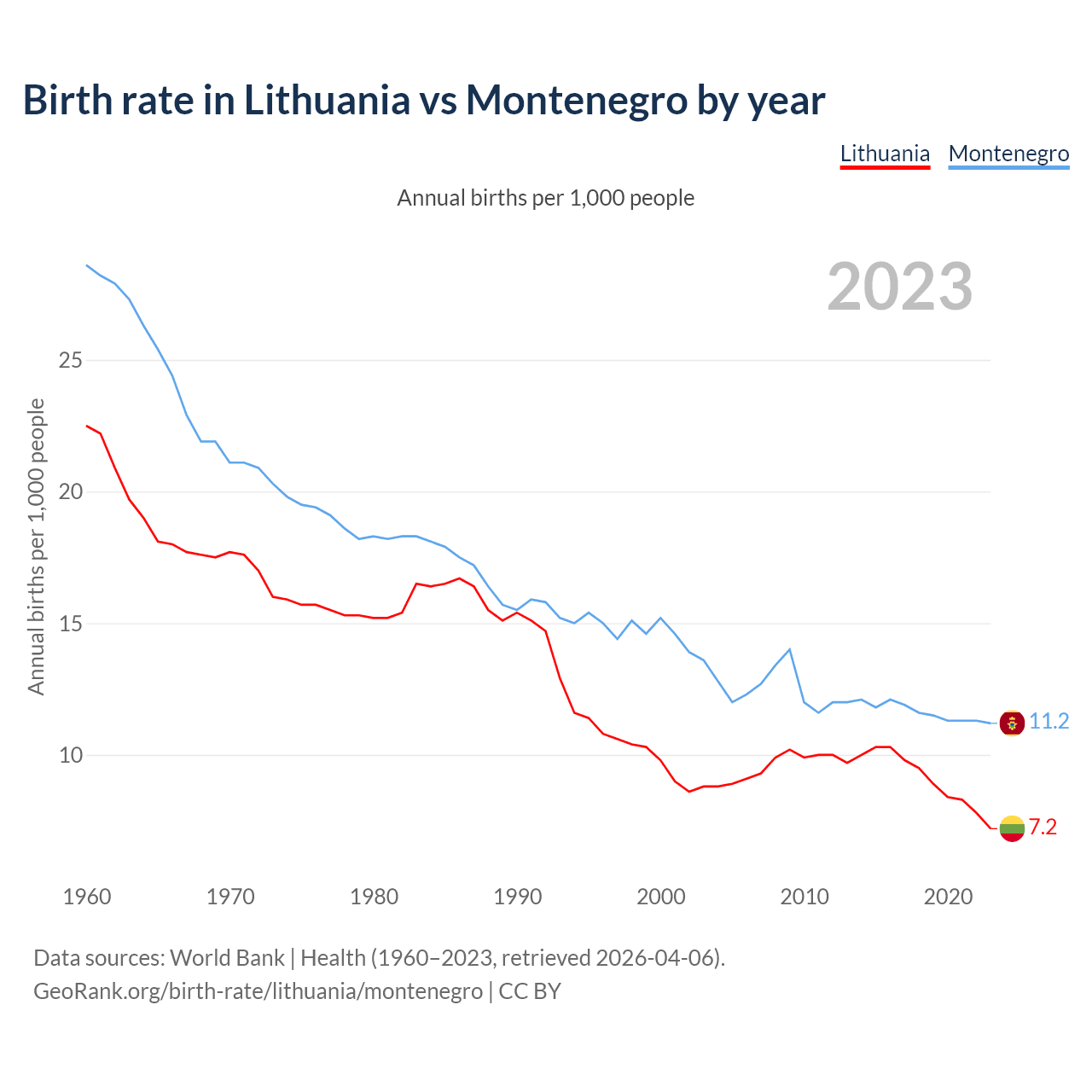 GeoRank.org/birth-rate/lithuania/montenegro | CC BY