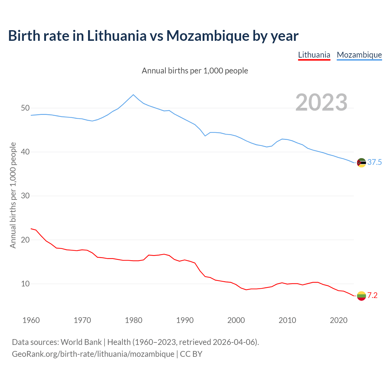GeoRank.org/birth-rate/lithuania/mozambique | CC BY