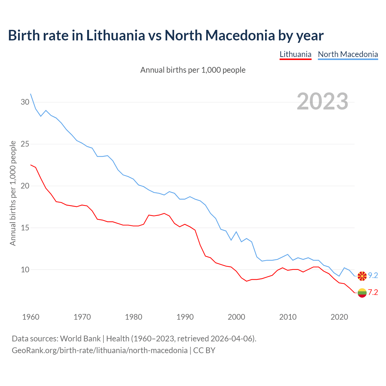 GeoRank.org/birth-rate/lithuania/north-macedonia | CC BY