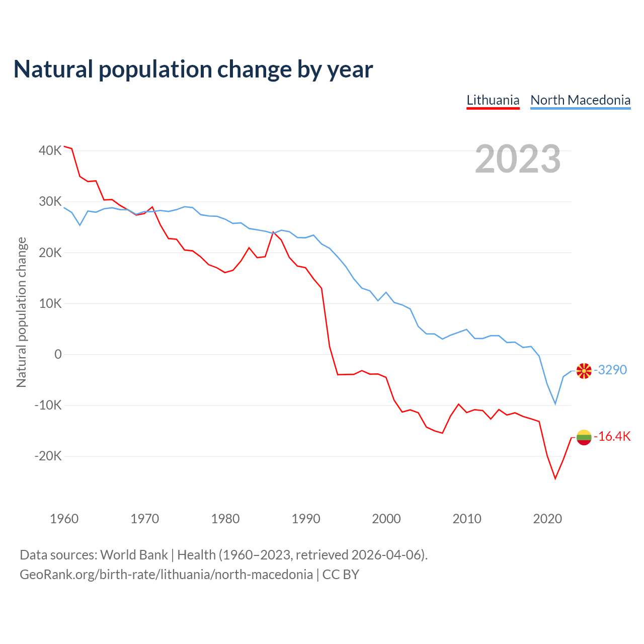 - Lithuania is ranked 185/196 by birth rate compared to 158/196 for North Macedonia.