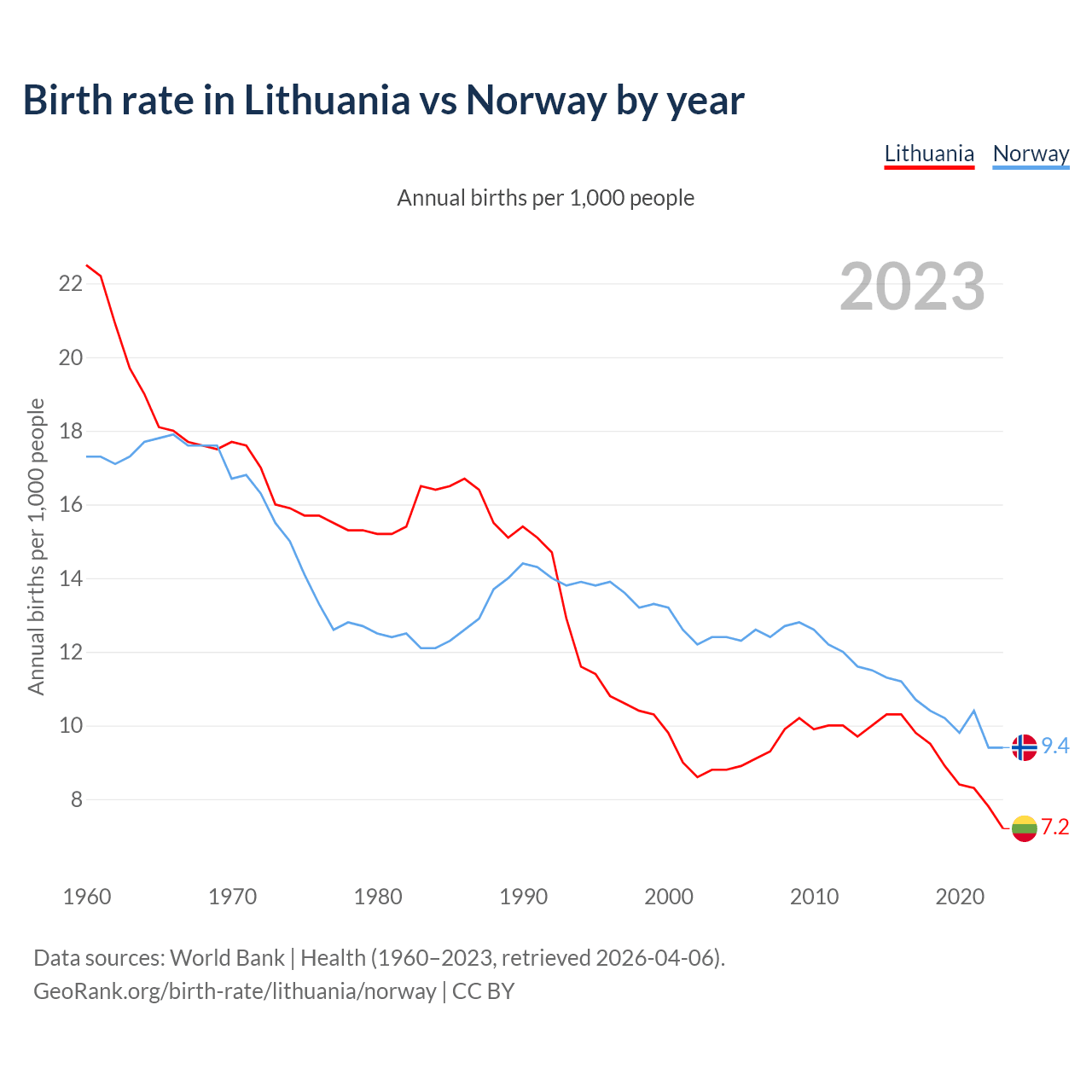GeoRank.org/birth-rate/lithuania/norway | CC BY