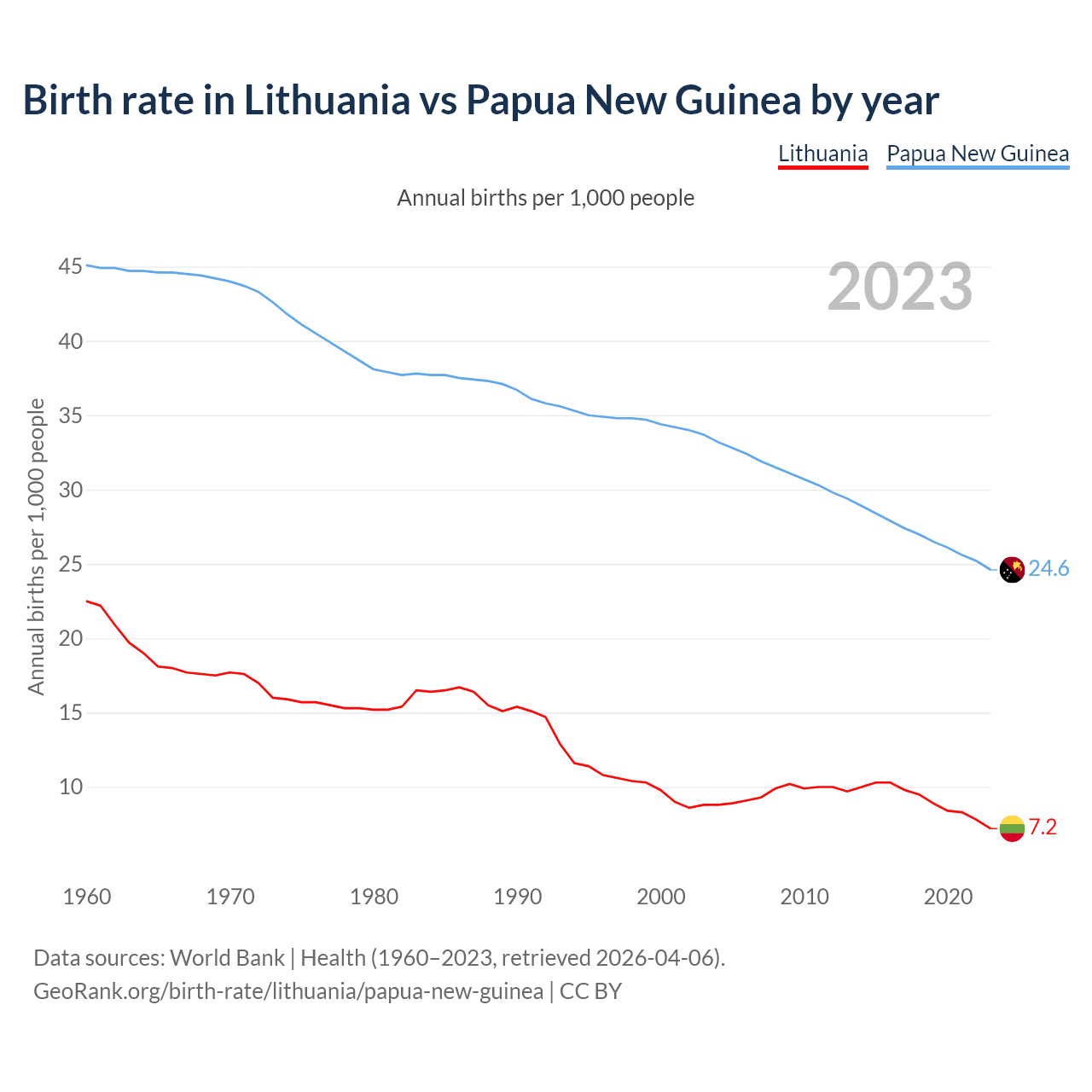 GeoRank.org/birth-rate/lithuania/papua-new-guinea | CC BY