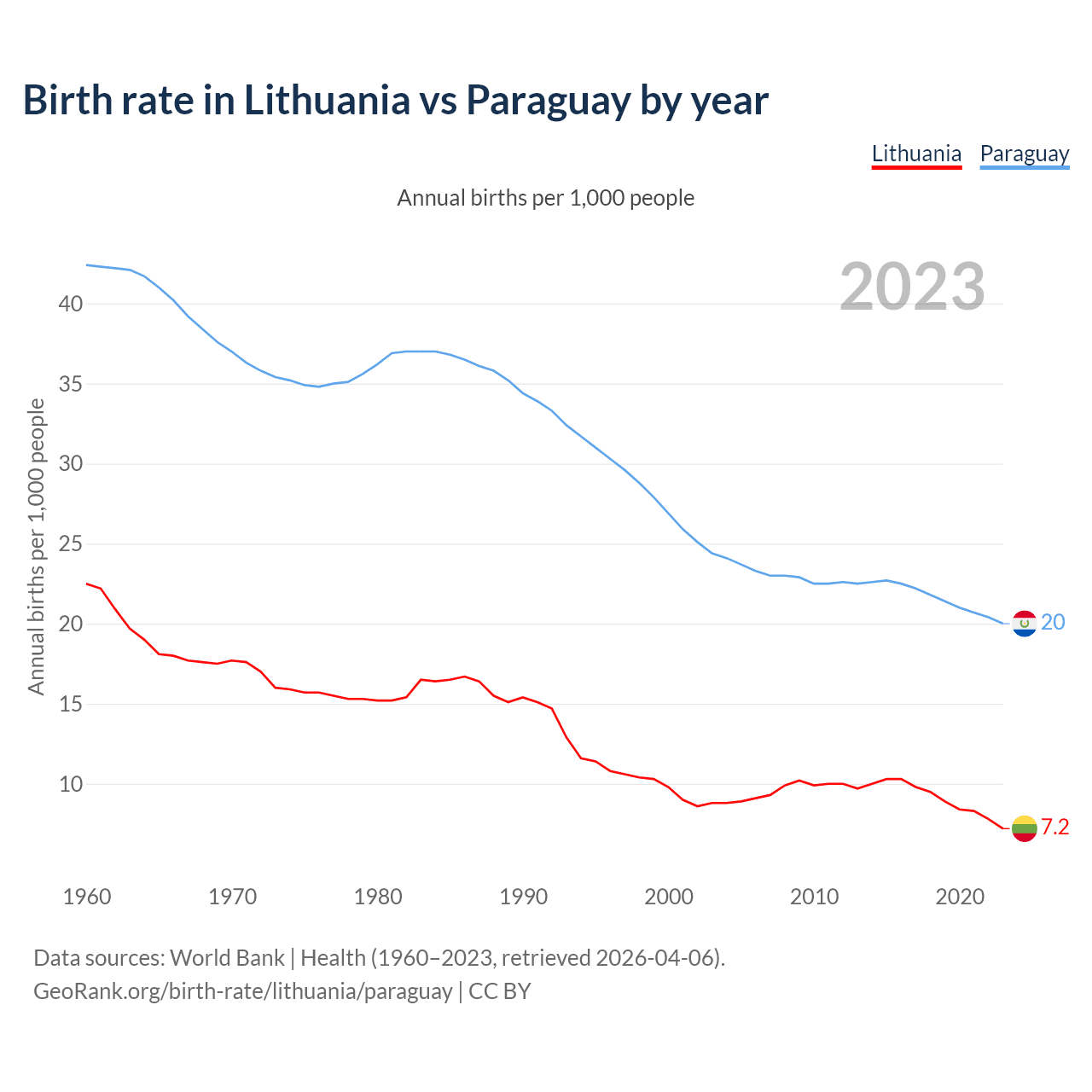 GeoRank.org/birth-rate/lithuania/paraguay | CC BY
