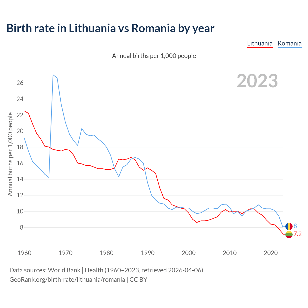 GeoRank.org/birth-rate/lithuania/romania | CC BY