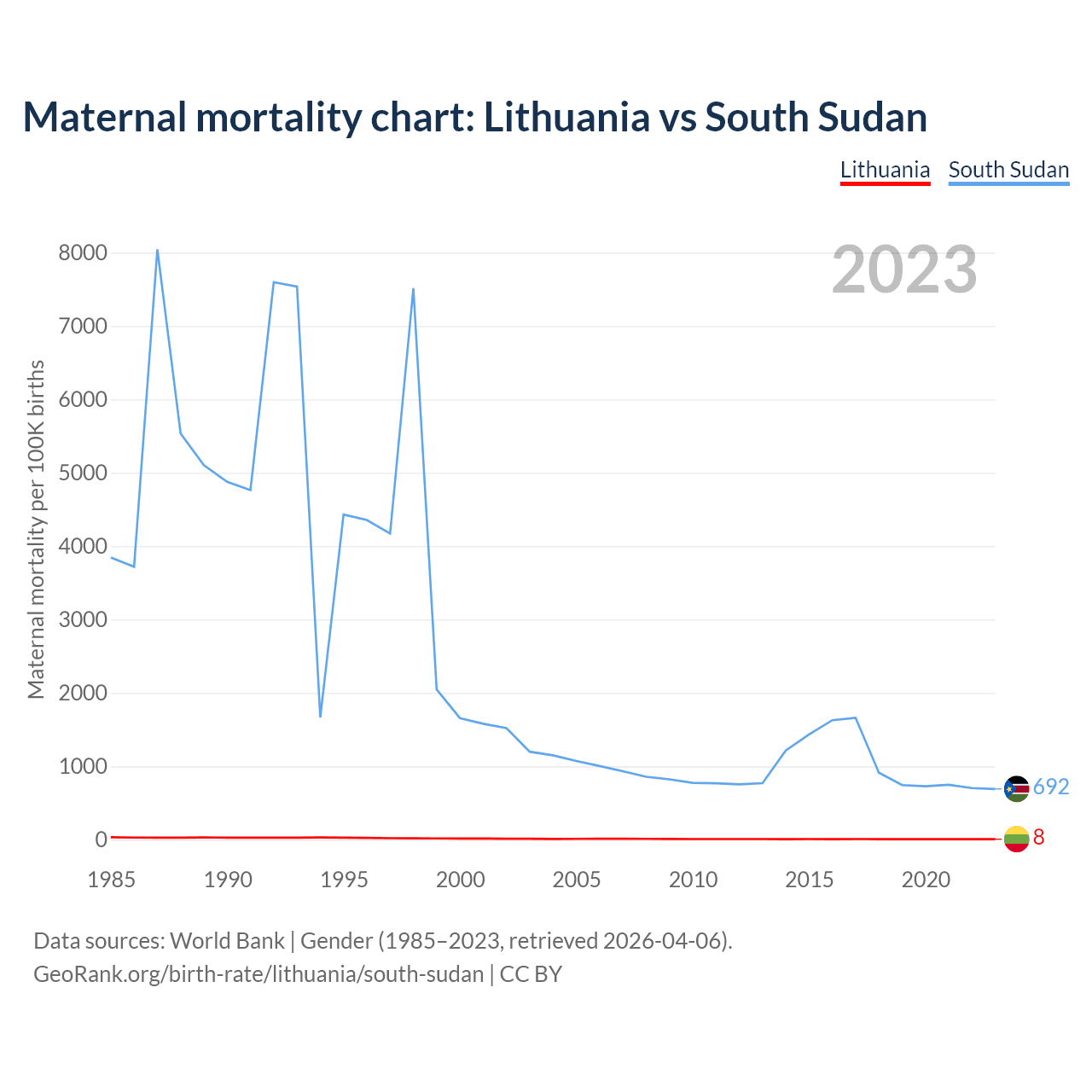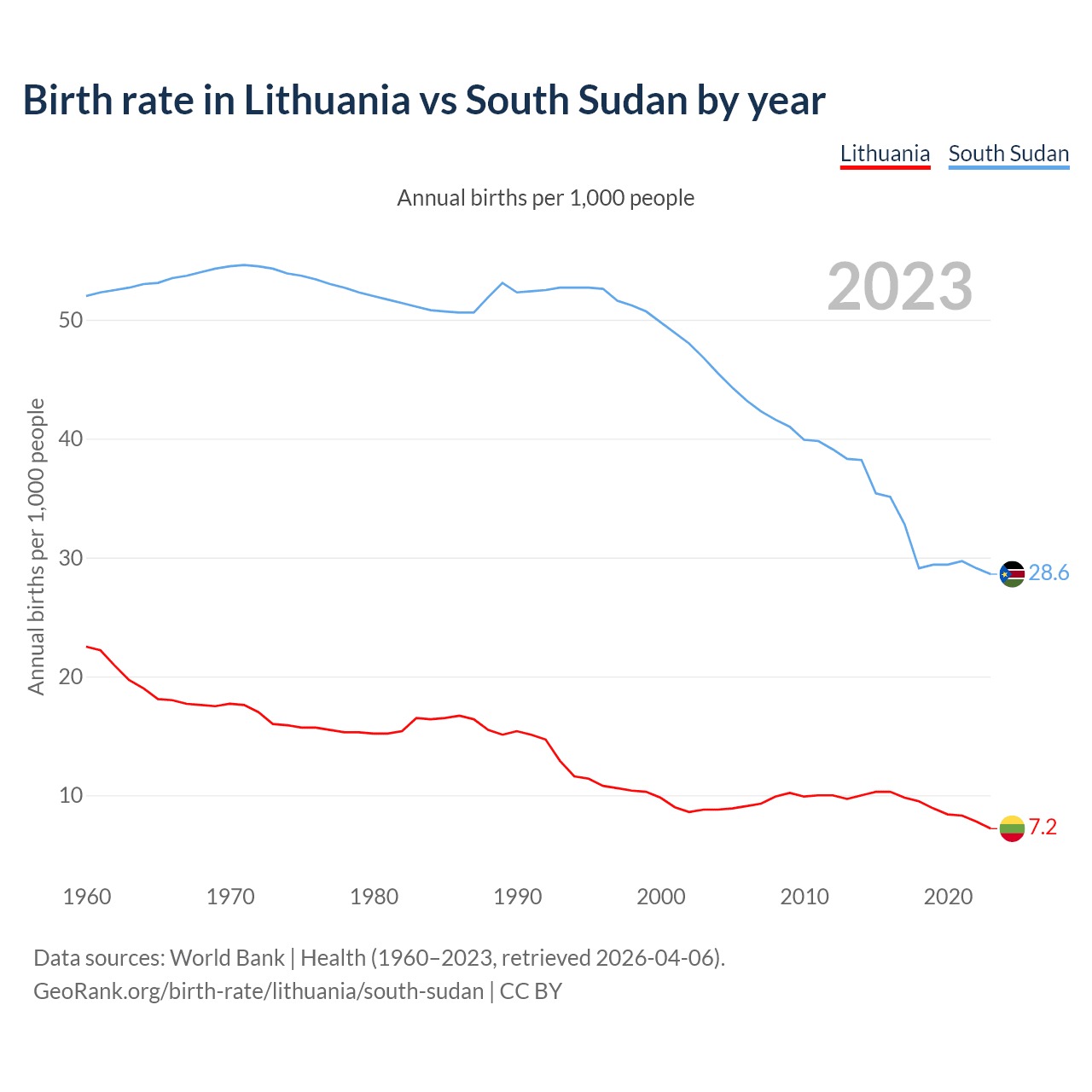 GeoRank.org/birth-rate/lithuania/south-sudan | CC BY