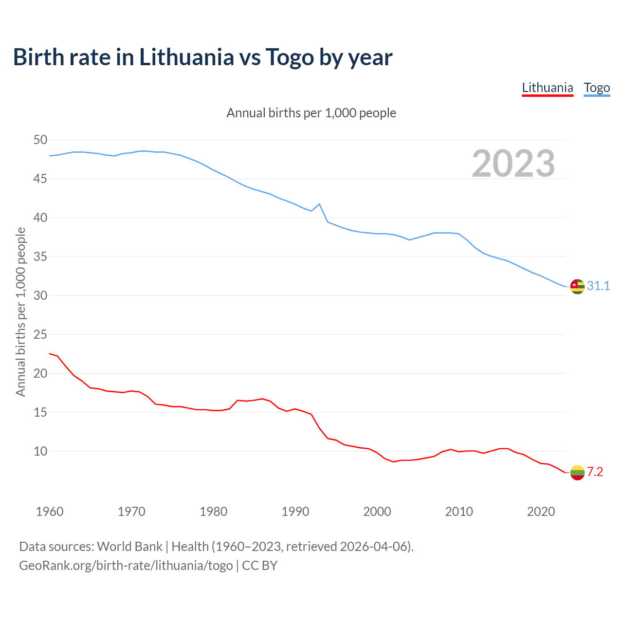 GeoRank.org/birth-rate/lithuania/togo | CC BY