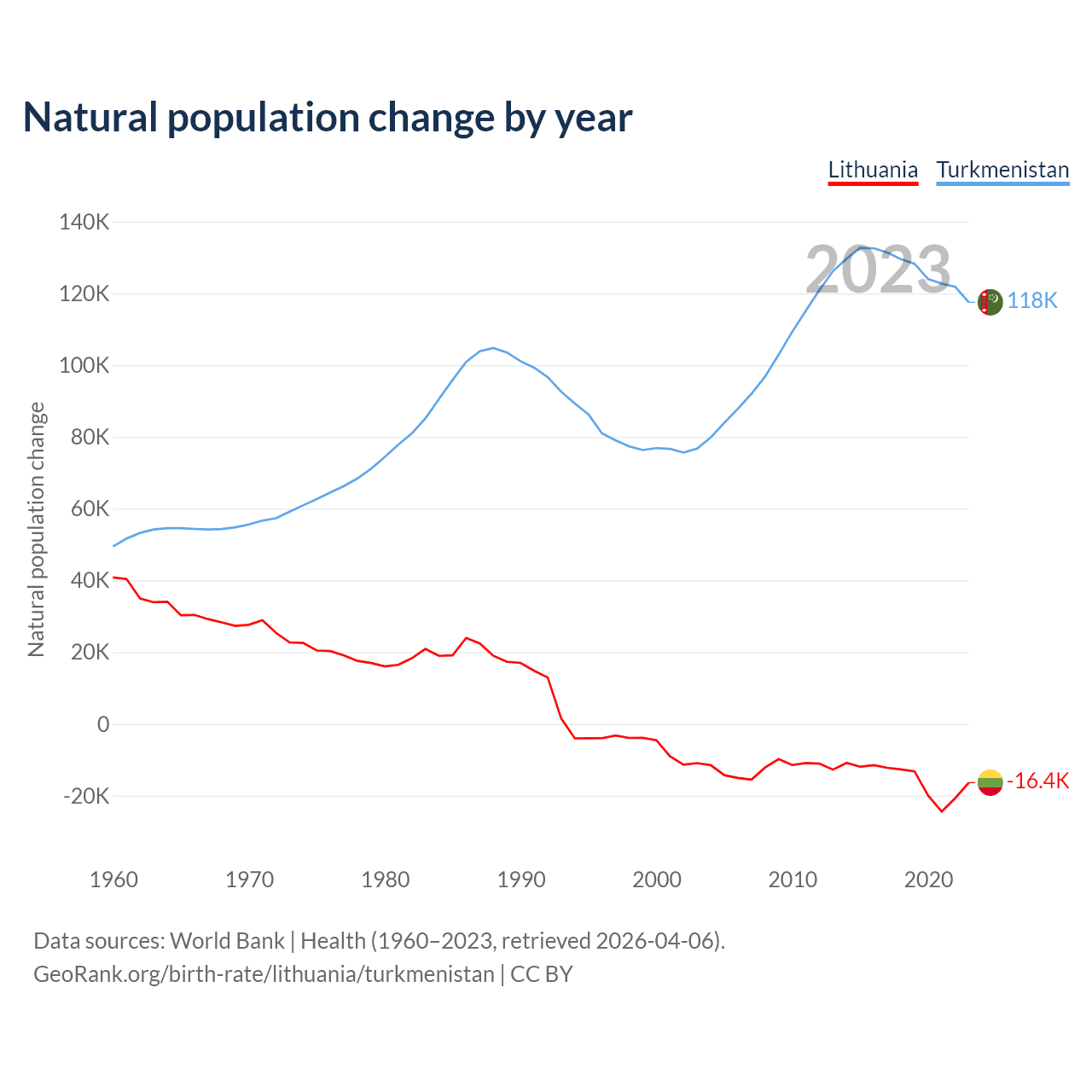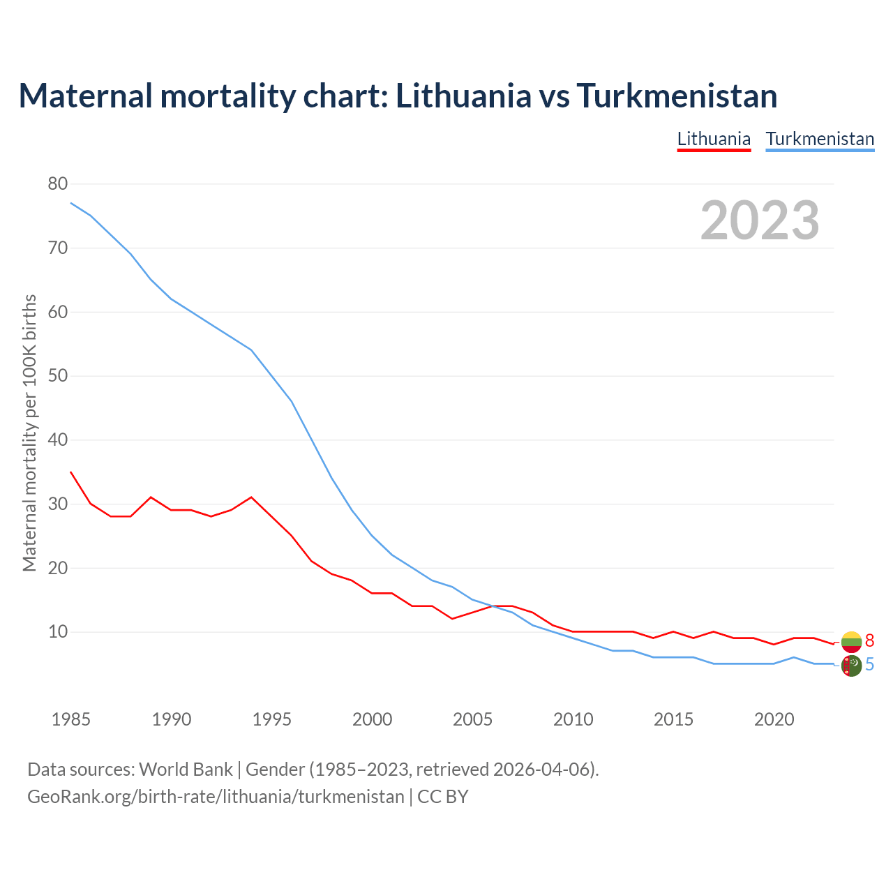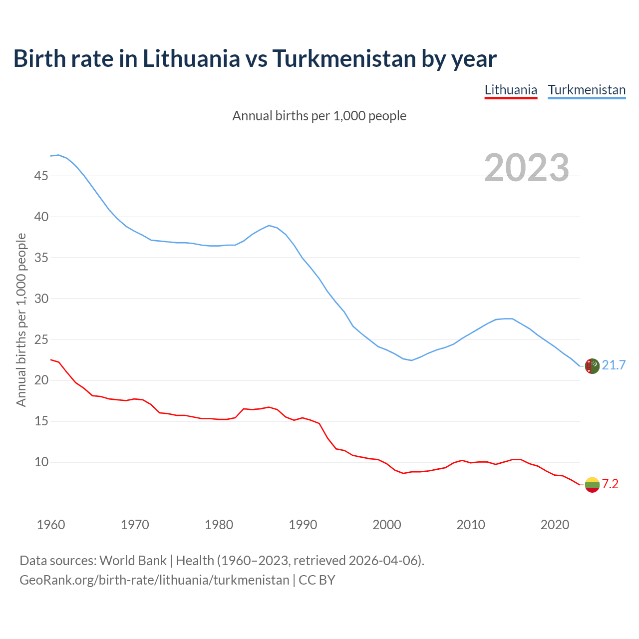 GeoRank.org/birth-rate/lithuania/turkmenistan | CC BY