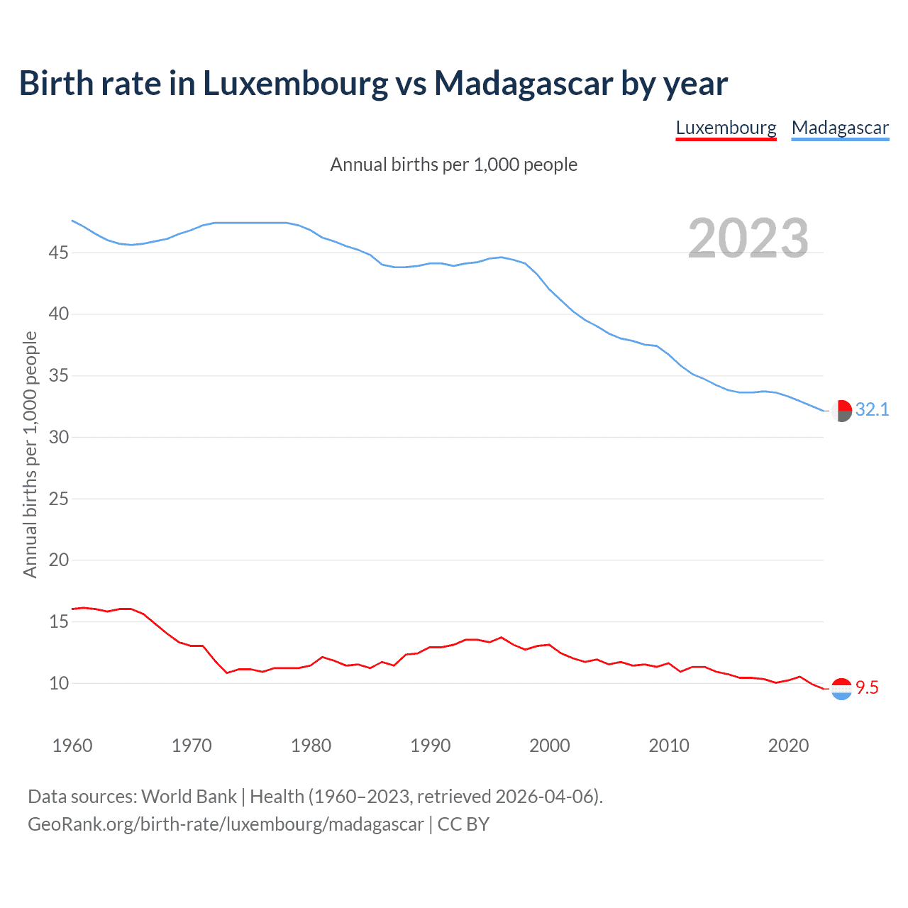 GeoRank.org/birth-rate/luxembourg/madagascar | CC BY