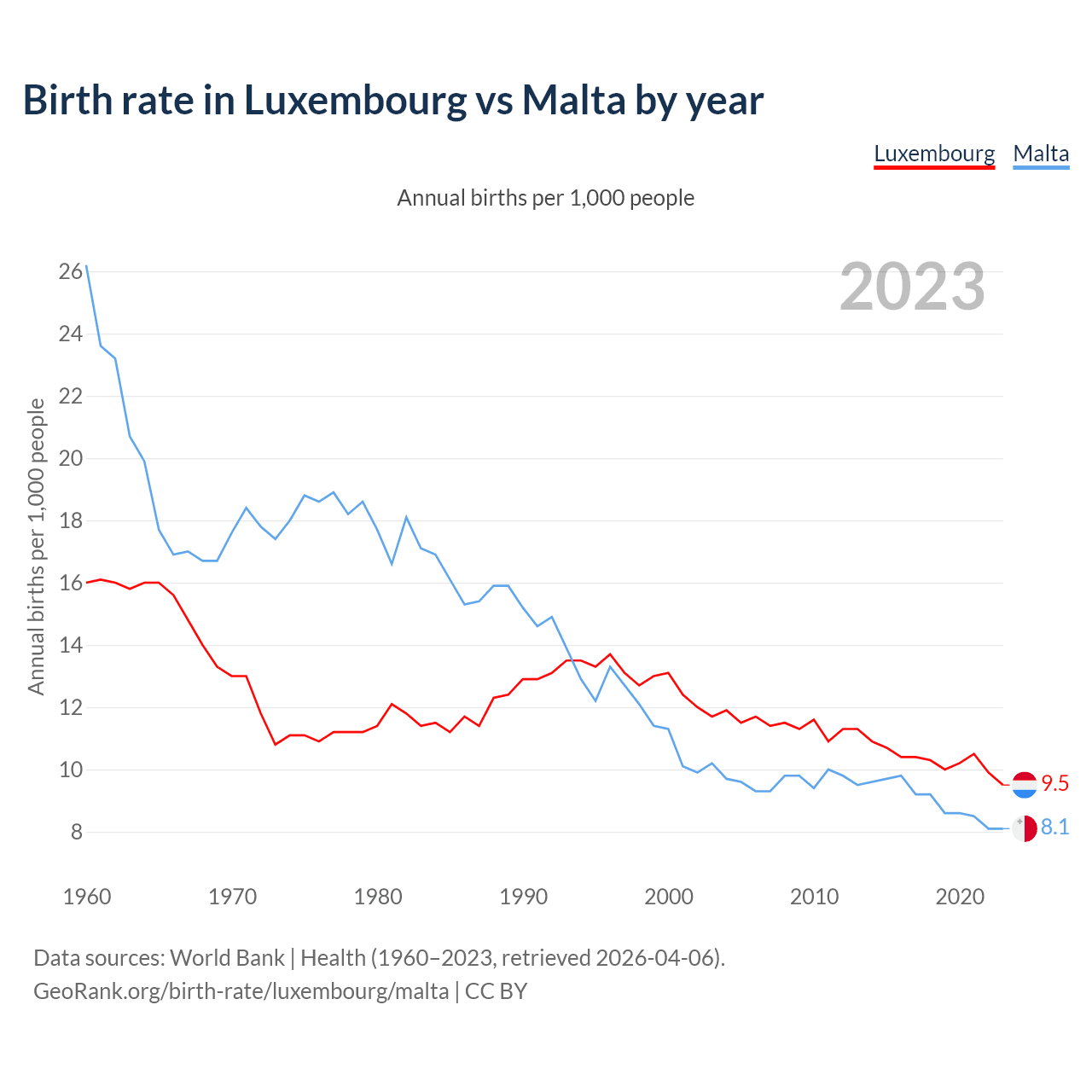 GeoRank.org/birth-rate/luxembourg/malta | CC BY