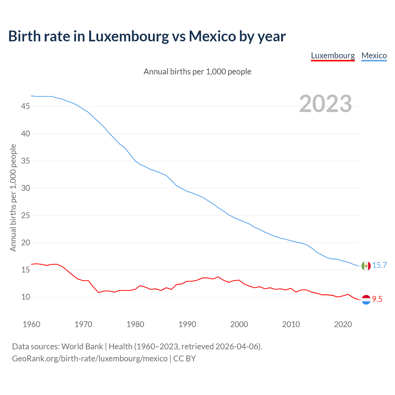 GeoRank.org/birth-rate/luxembourg/mexico | CC BY