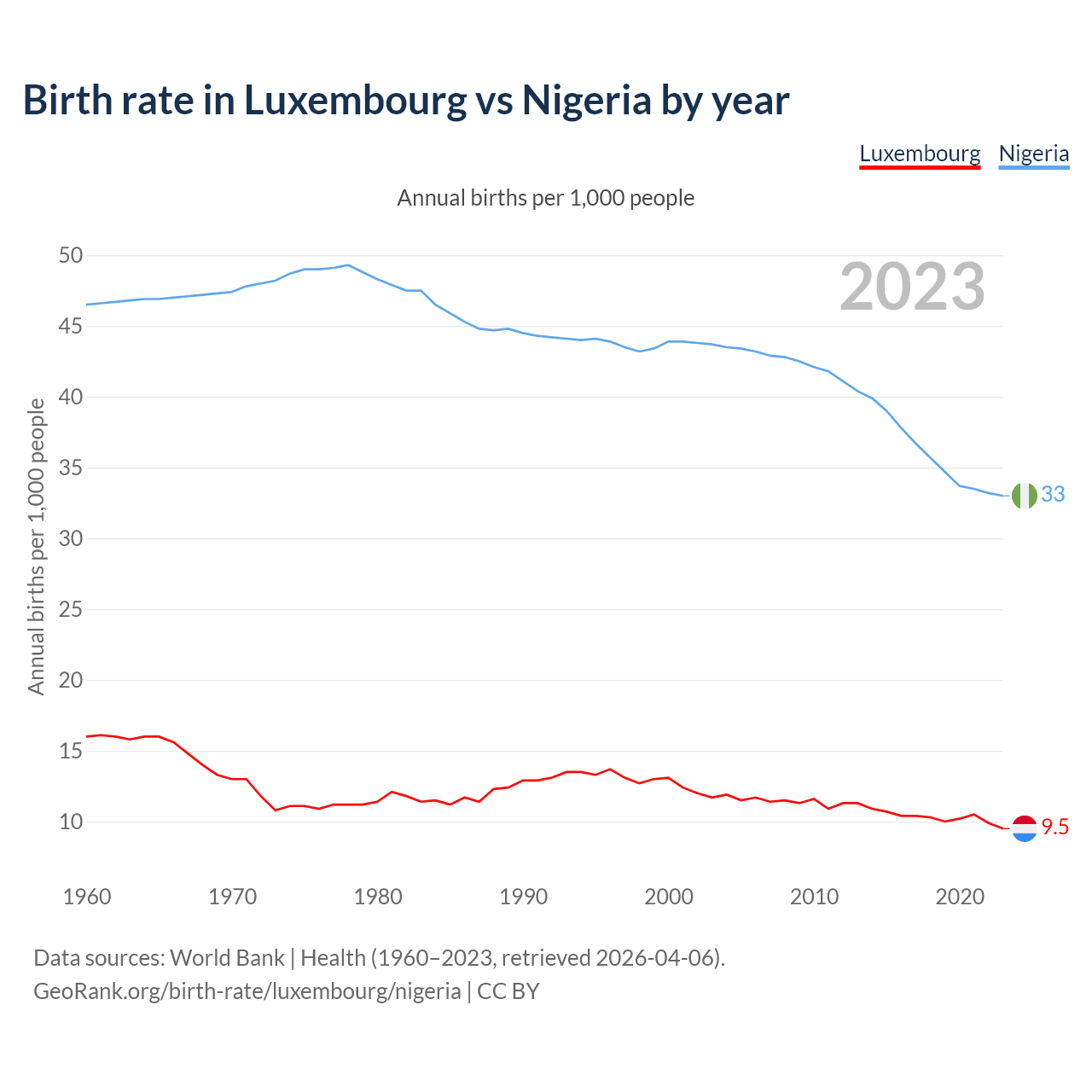 GeoRank.org/birth-rate/luxembourg/nigeria | CC BY