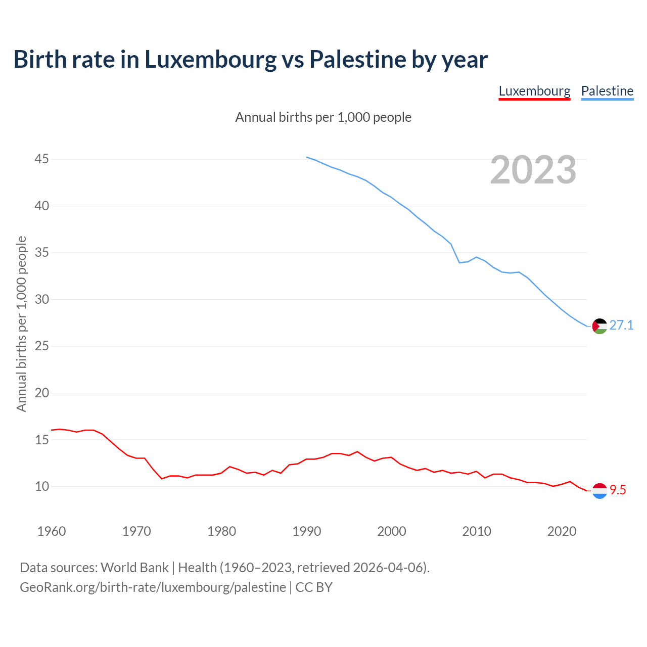 GeoRank.org/birth-rate/luxembourg/palestine | CC BY