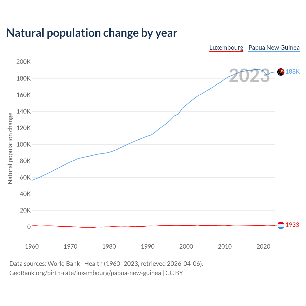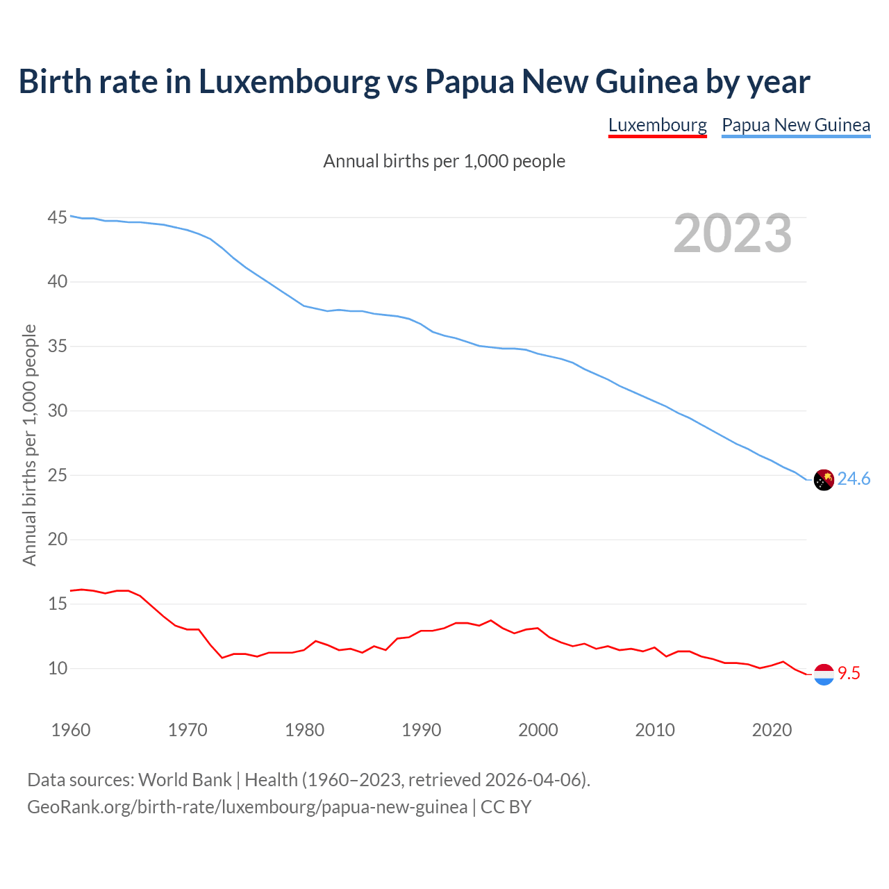 GeoRank.org/birth-rate/luxembourg/papua-new-guinea | CC BY