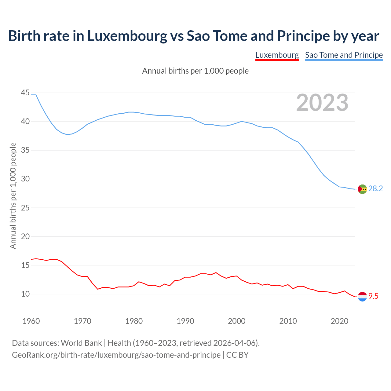 GeoRank.org/birth-rate/luxembourg/sao-tome-and-principe | CC BY