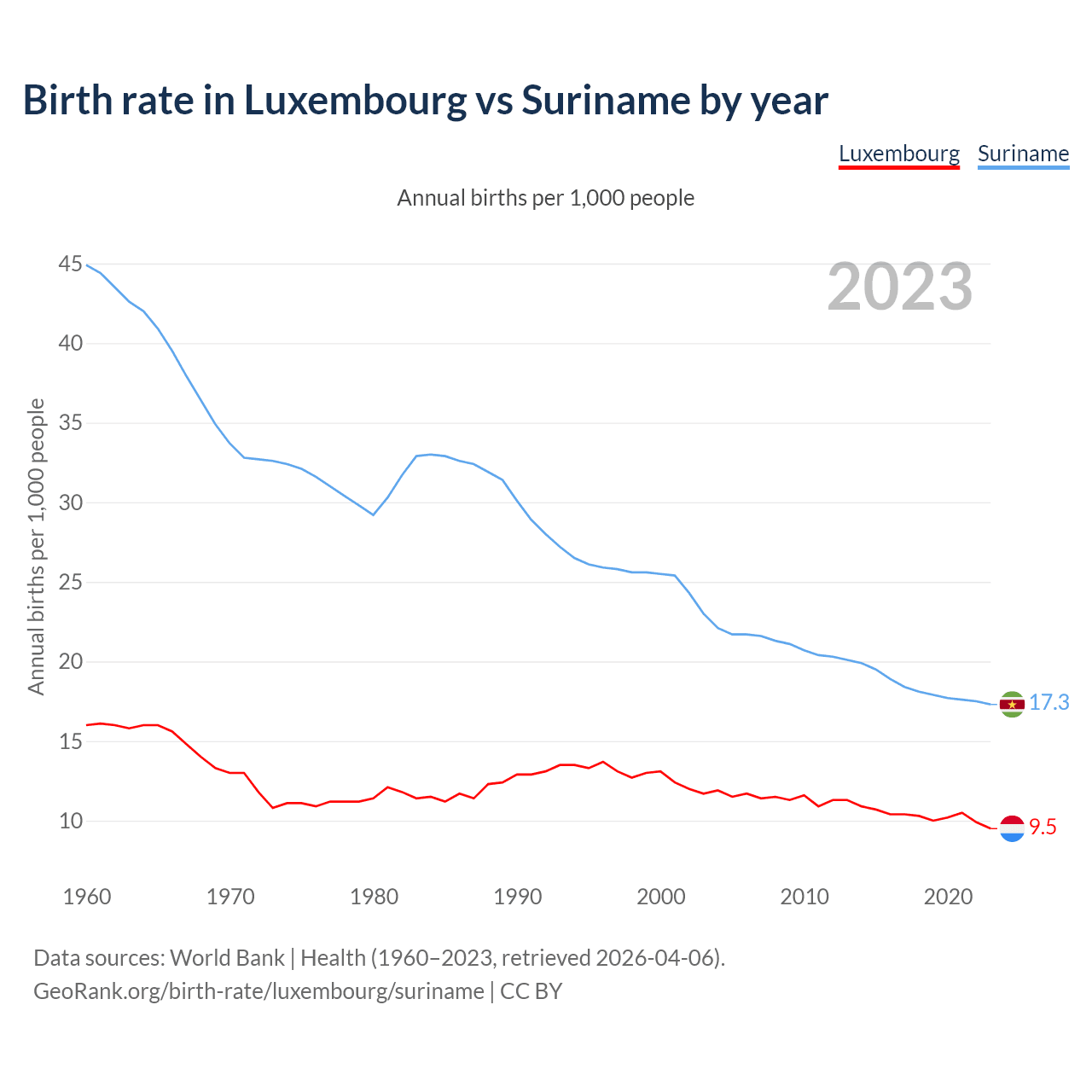GeoRank.org/birth-rate/luxembourg/suriname | CC BY