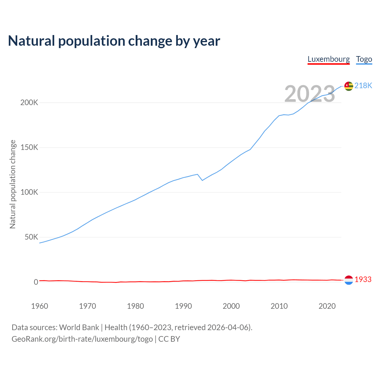 GeoRank.org/birth-rate/luxembourg/togo | CC BY