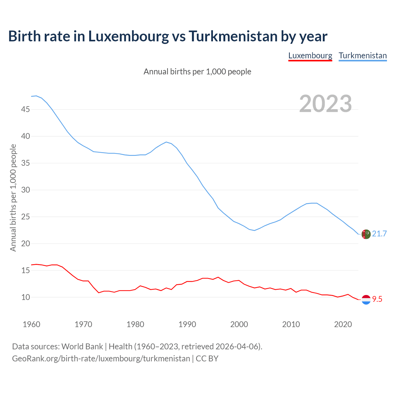 GeoRank.org/birth-rate/luxembourg/turkmenistan | CC BY