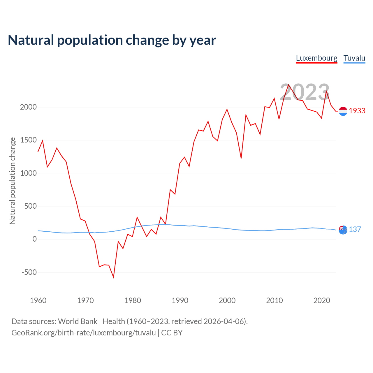 GeoRank.org/birth-rate/luxembourg/tuvalu | CC BY