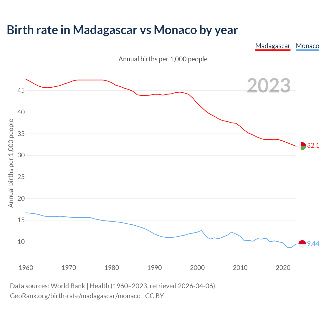 GeoRank.org/birth-rate/madagascar/monaco | CC BY