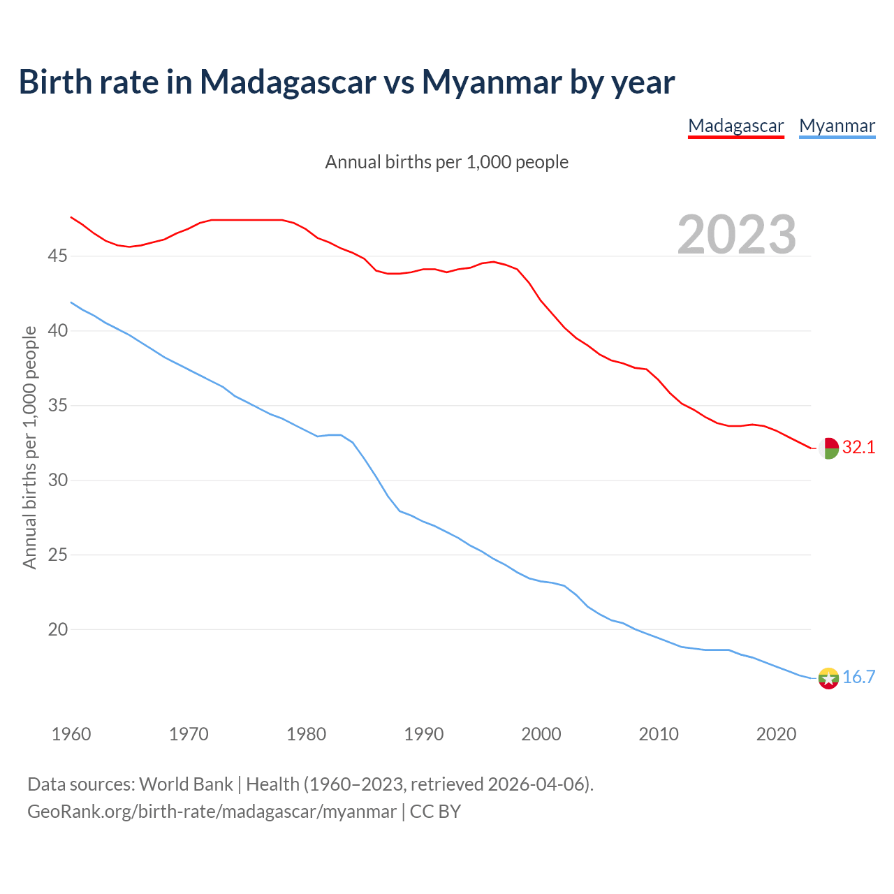 GeoRank.org/birth-rate/madagascar/myanmar | CC BY
