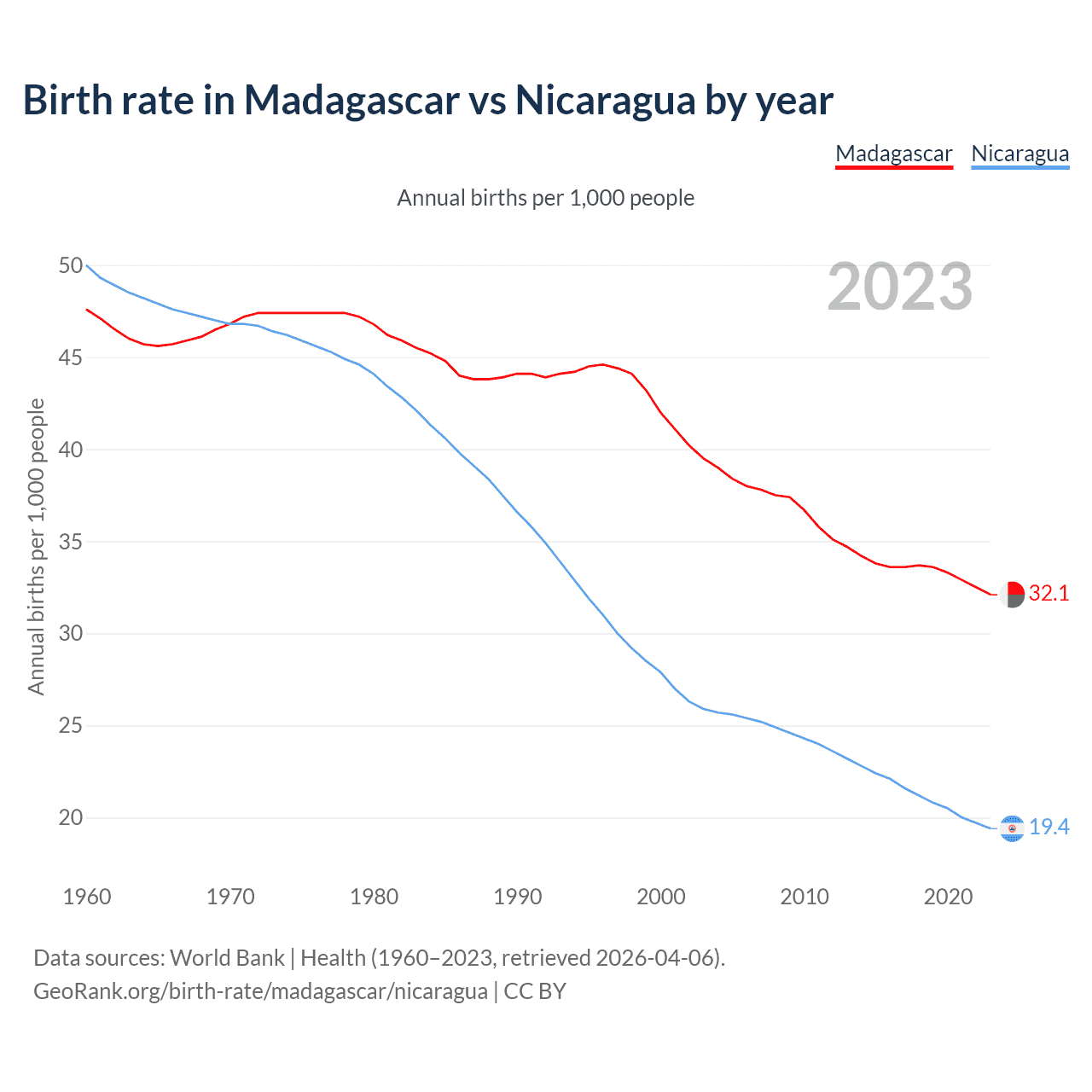 GeoRank.org/birth-rate/madagascar/nicaragua | CC BY