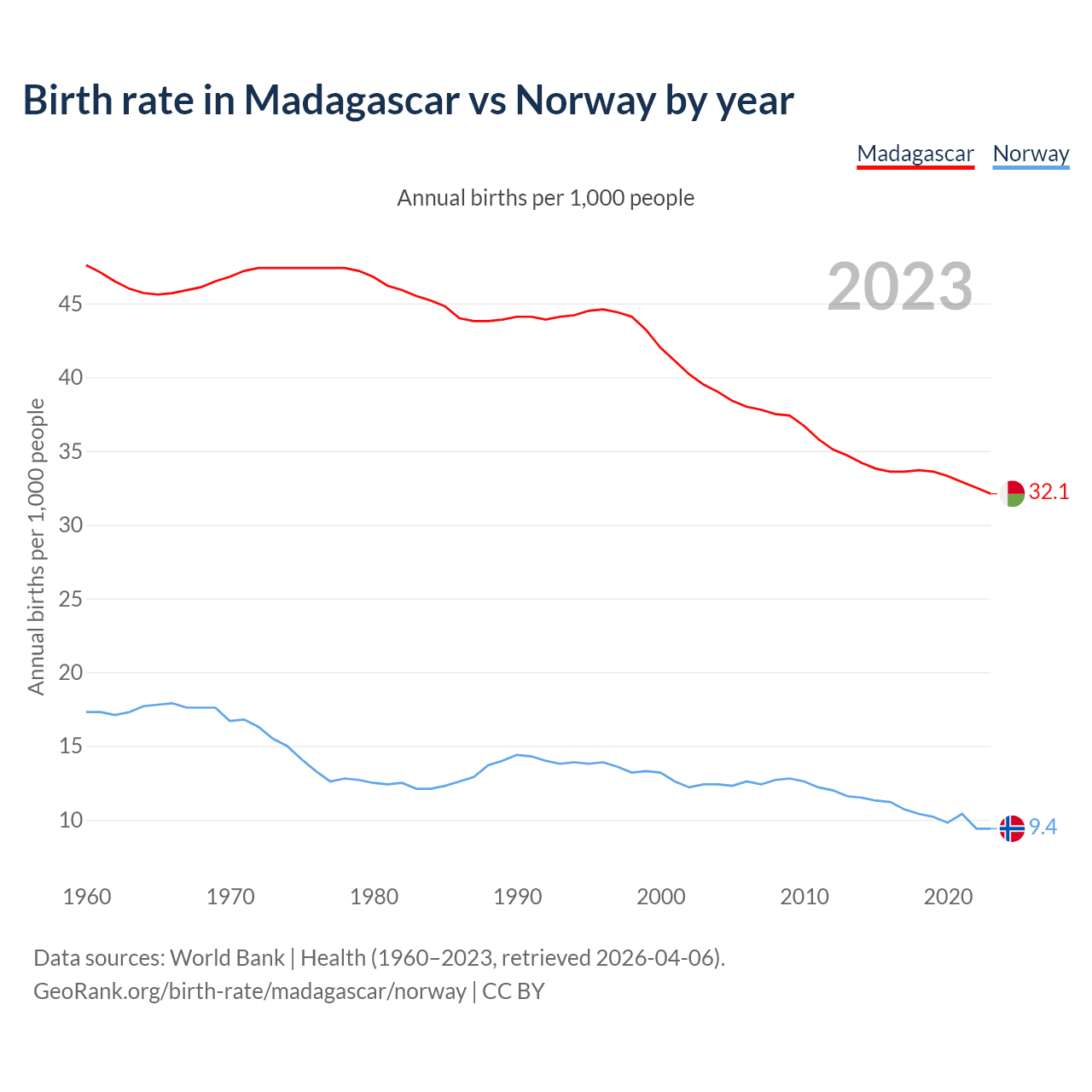 GeoRank.org/birth-rate/madagascar/norway | CC BY