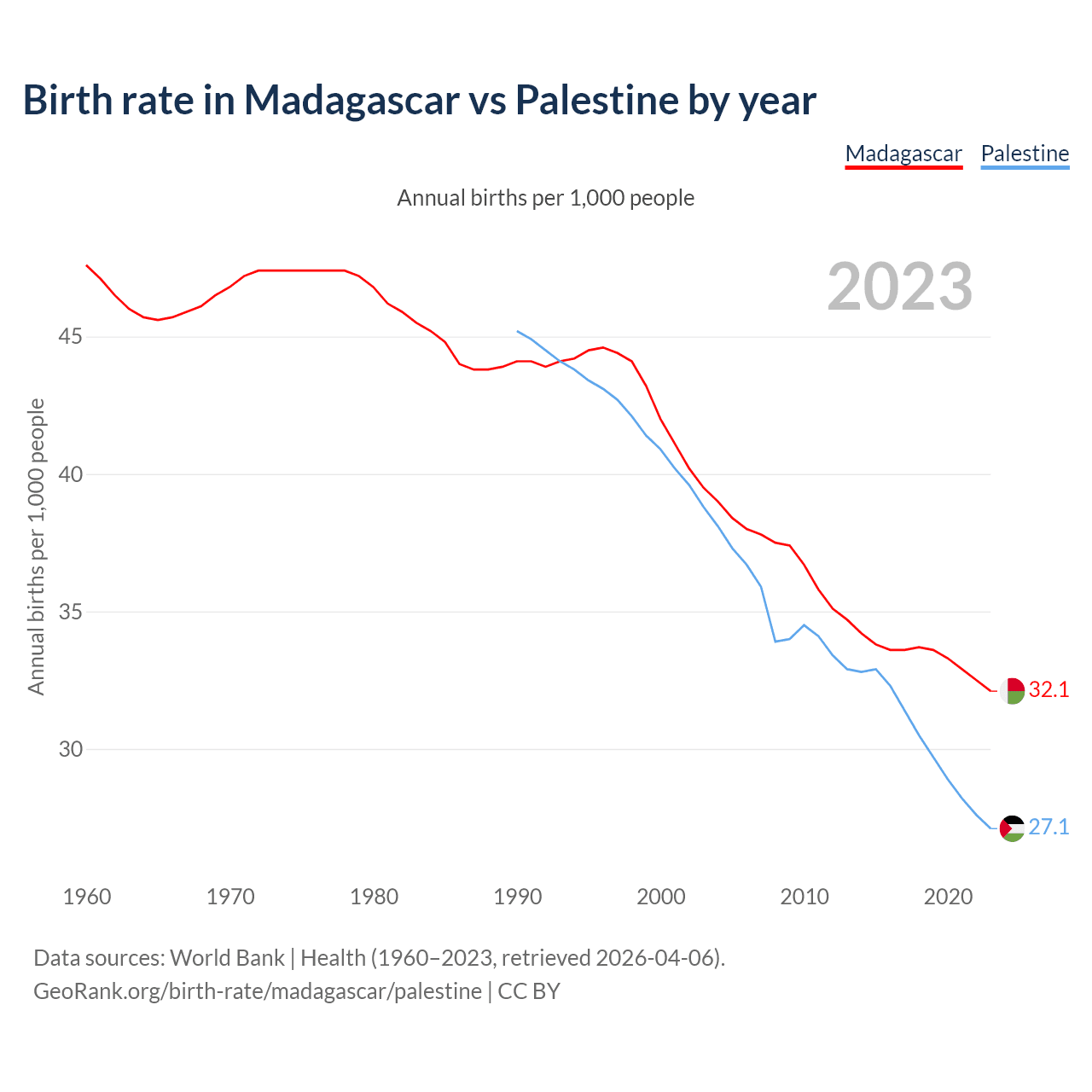 GeoRank.org/birth-rate/madagascar/palestine | CC BY