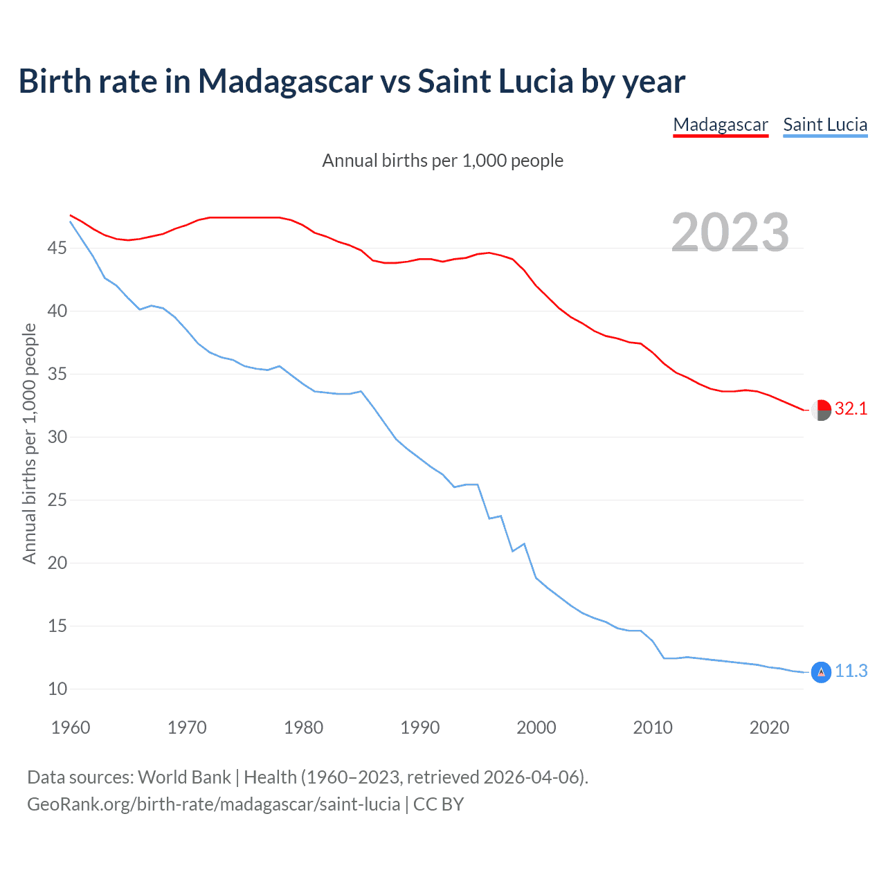 GeoRank.org/birth-rate/madagascar/saint-lucia | CC BY