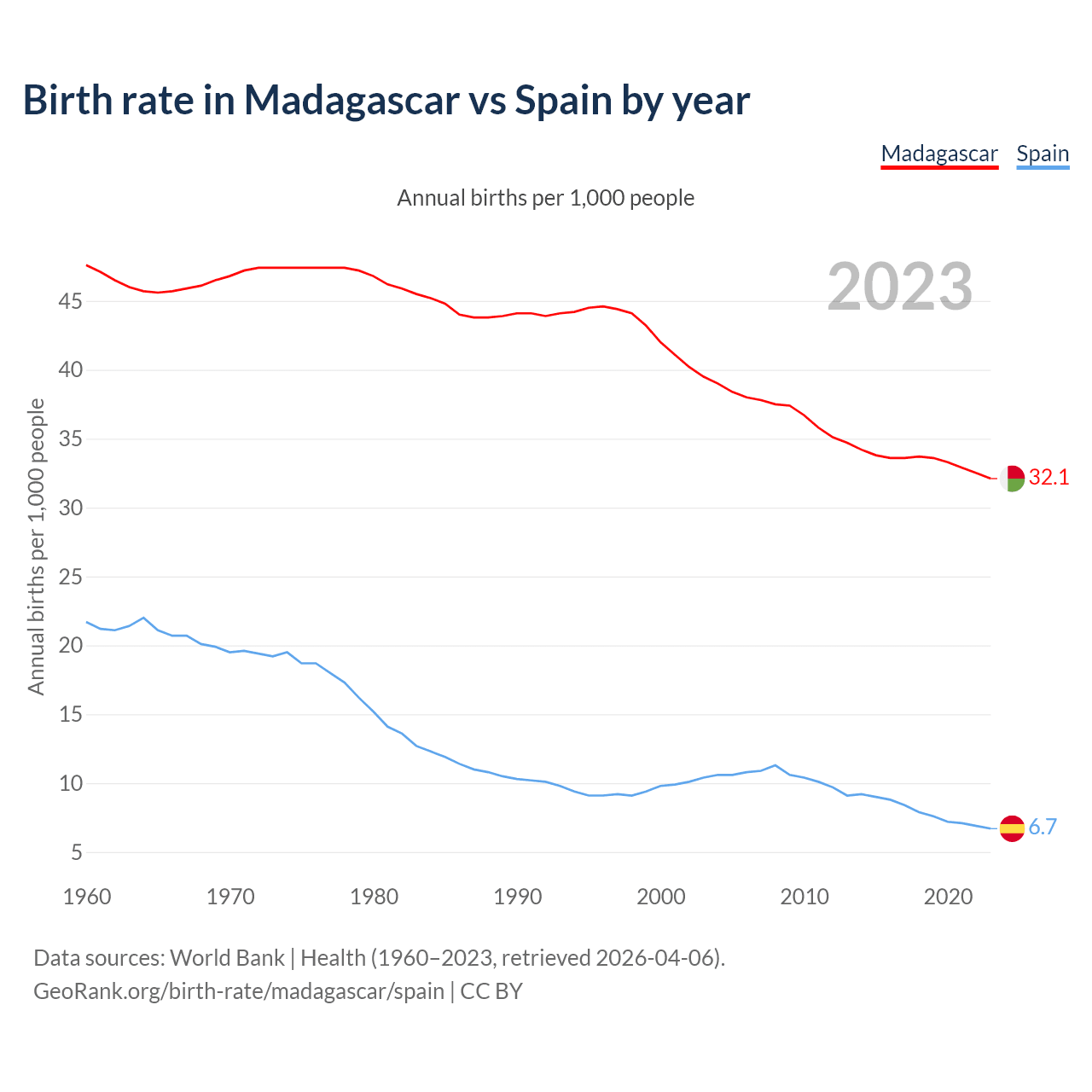 GeoRank.org/birth-rate/madagascar/spain | CC BY