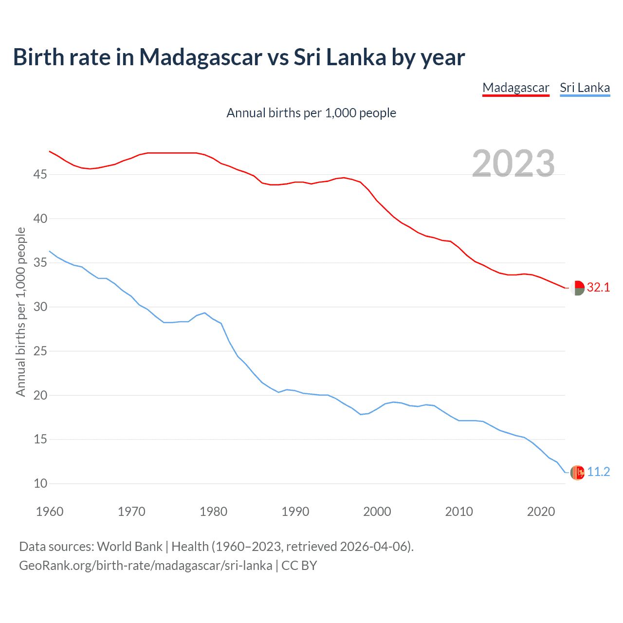 GeoRank.org/birth-rate/madagascar/sri-lanka | CC BY