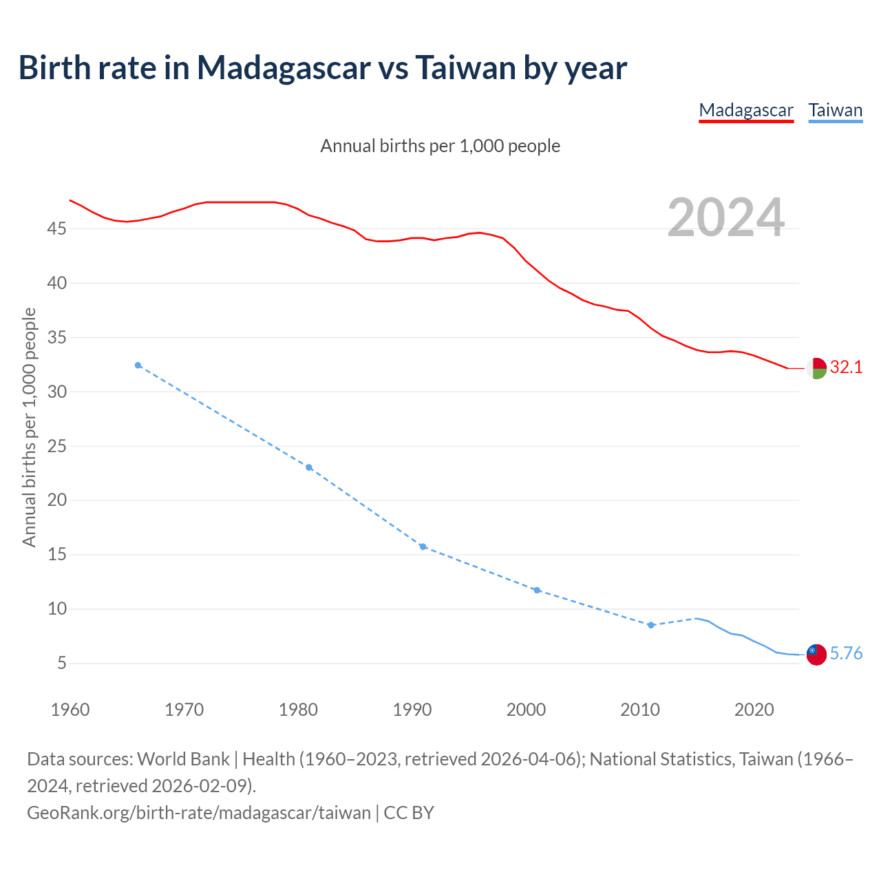 GeoRank.org/birth-rate/madagascar/taiwan | CC BY