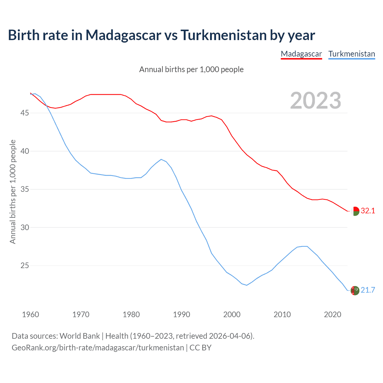 GeoRank.org/birth-rate/madagascar/turkmenistan | CC BY